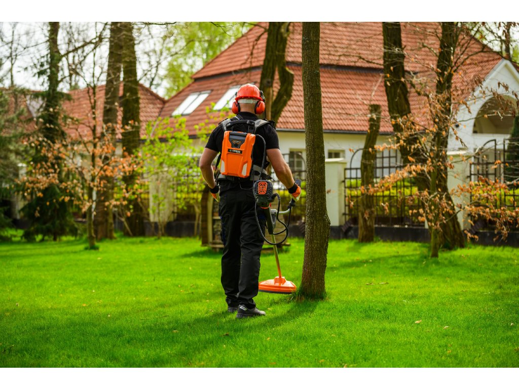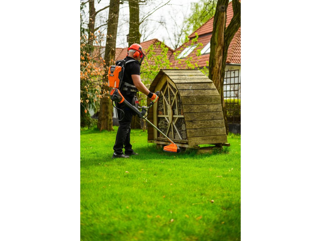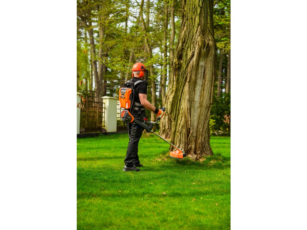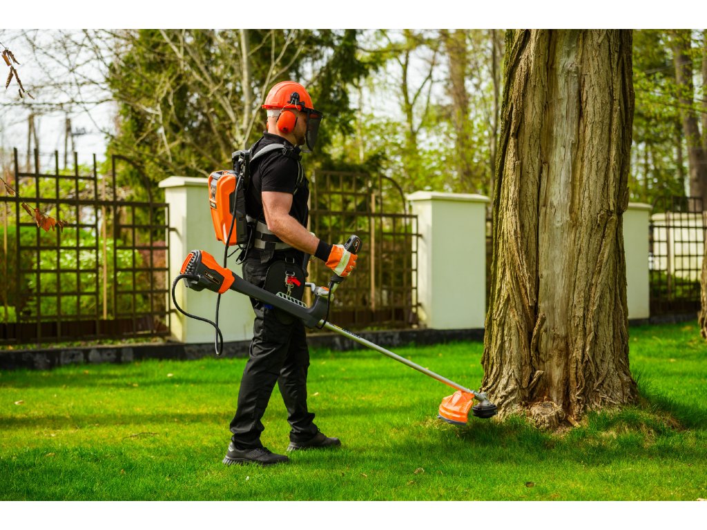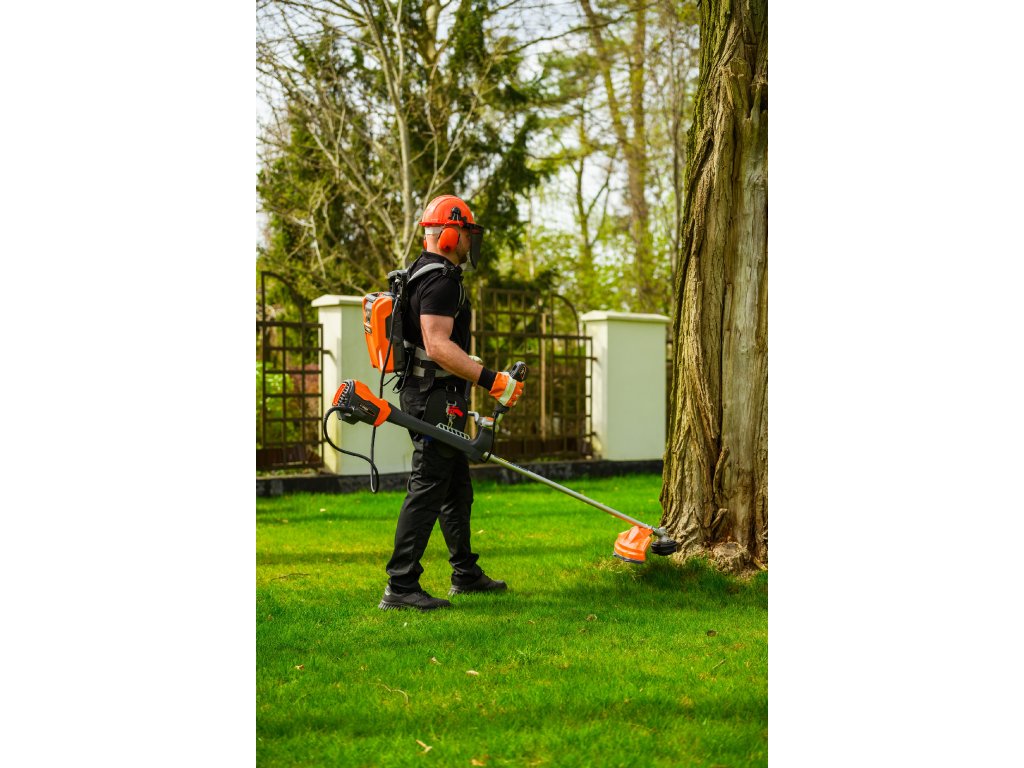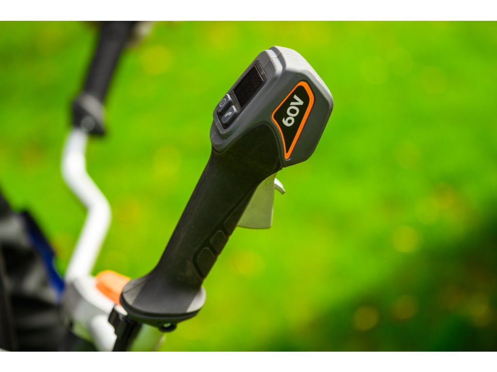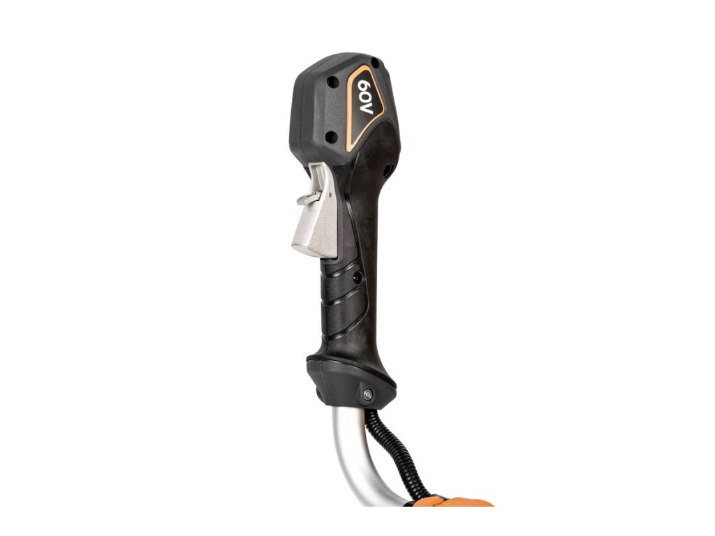 Výkonný akumulátorový krovinorez s bezuhlíkovým motorom 1800 W a napätím 60 V. Vďaka systému napájania Plug-In je ideálny na náročné záhradné práce s maximálnou voľnosťou pohybu.