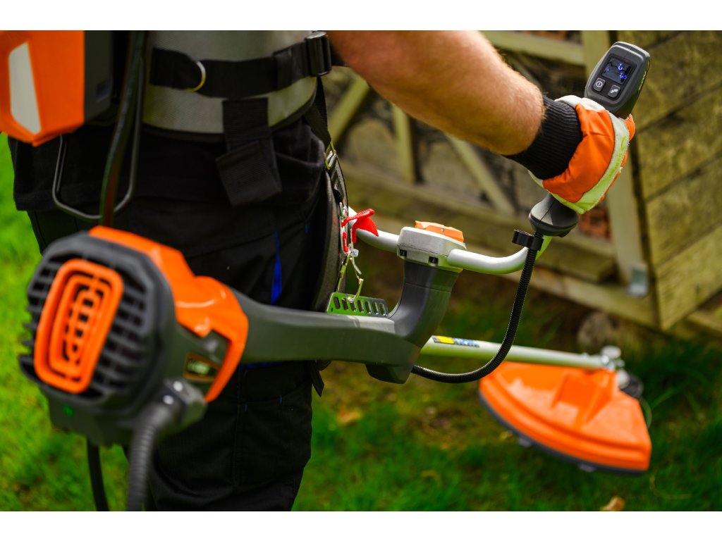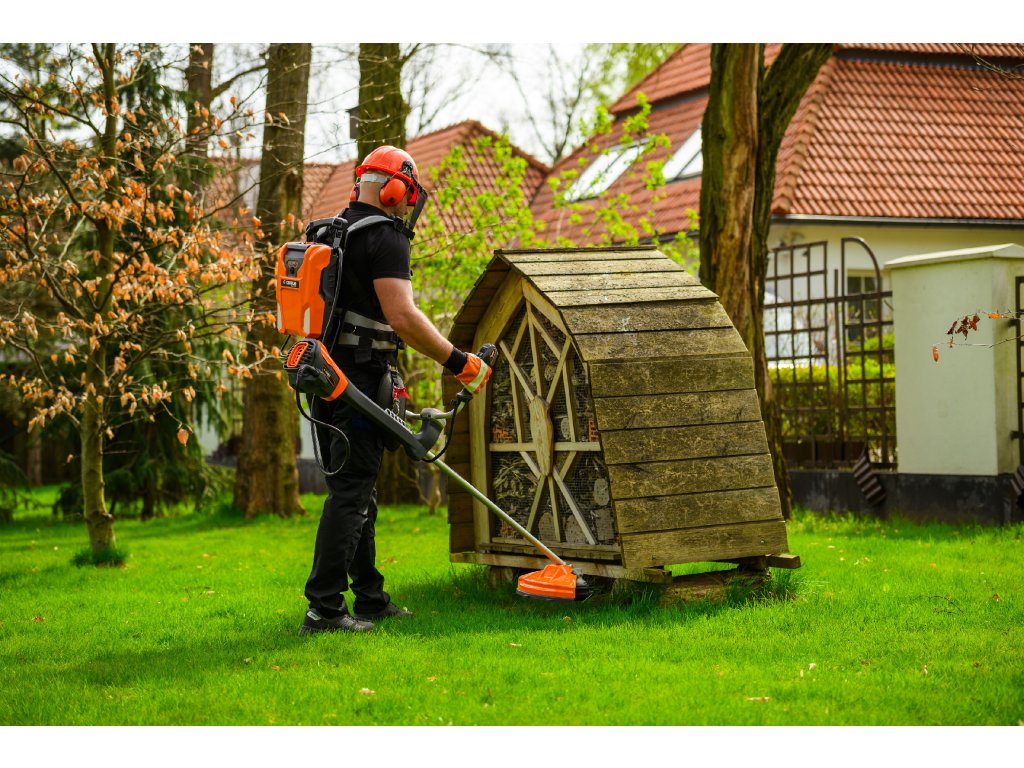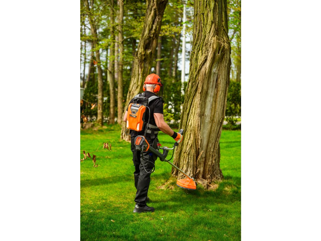 - Rýchlosť otáčok je možné prispôsobiť podľa potreby (4500 / 5200 / 5800 ot/min) a krovinorez je možné používať ako s hlavou pre strunové kosenie so šírkou 420 mm, tak aj s kovovým kotúčom s priemerom 258 mm. Vďaka ergonomickému obojručnému držadlu a nízkej hlučnosti je práca pohodlná a efektívna. Vysoko čitateľný displej uľahčuje kontrolu stavu zariadenia.