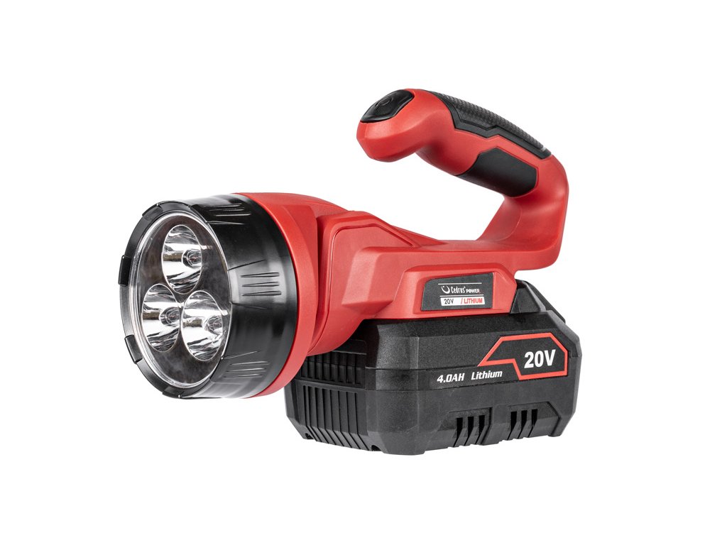 - Hlavica je nastaviteľná v rozsahu 90° v štyroch krokoch, čo umožňuje presné nasmerovanie svetla. Integrovaný systém ochrany batérie automaticky vypína zariadenie pri nízkom nabití, čím chráni akumulátor. LED indikátor na tele svietidla zobrazuje úroveň nabitia. Svietidlo je kompatibilné s akumulátormi CedLi-Ion 2Ah a 4Ah a zodpovedajúcimi nabíjačkami.