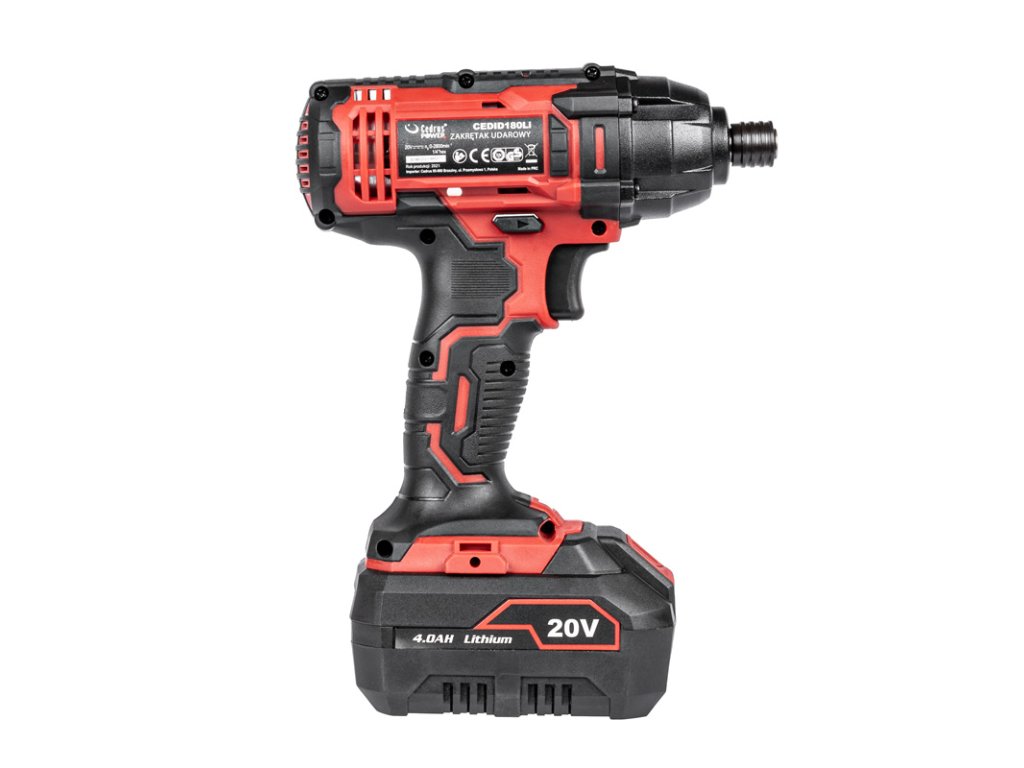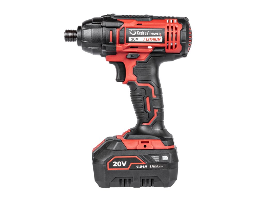 - Zariadenie je kompatibilné so systémom Cedrus Power+ 20V a je vybavené ochranou proti preťaženiu a prehriatiu, elektrickou brzdou motora a magnetickým držiakom bitov. Batéria a nabíjačka nie sú súčasťou balenia.