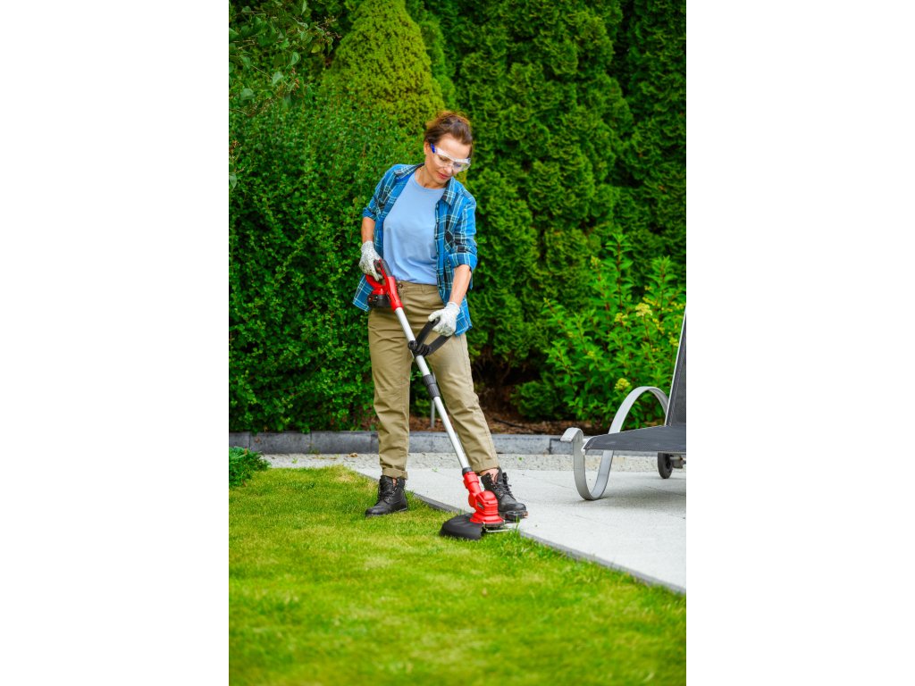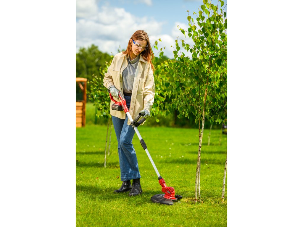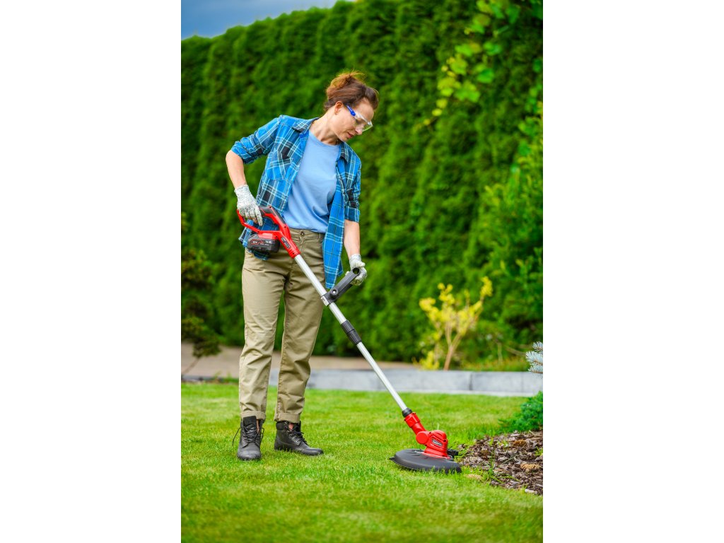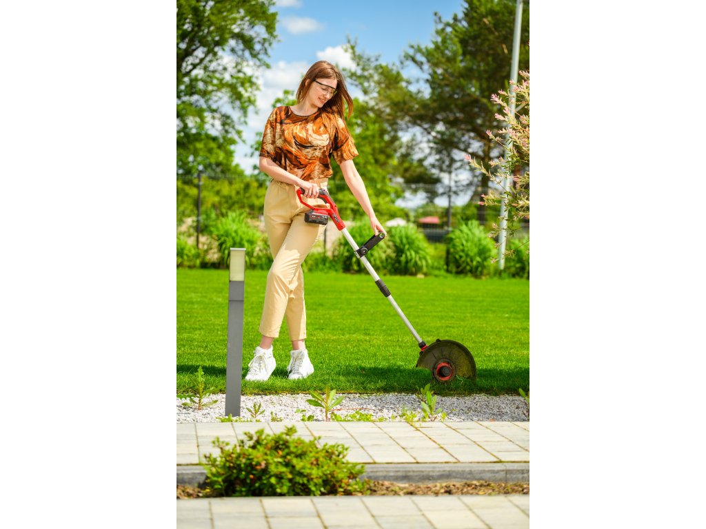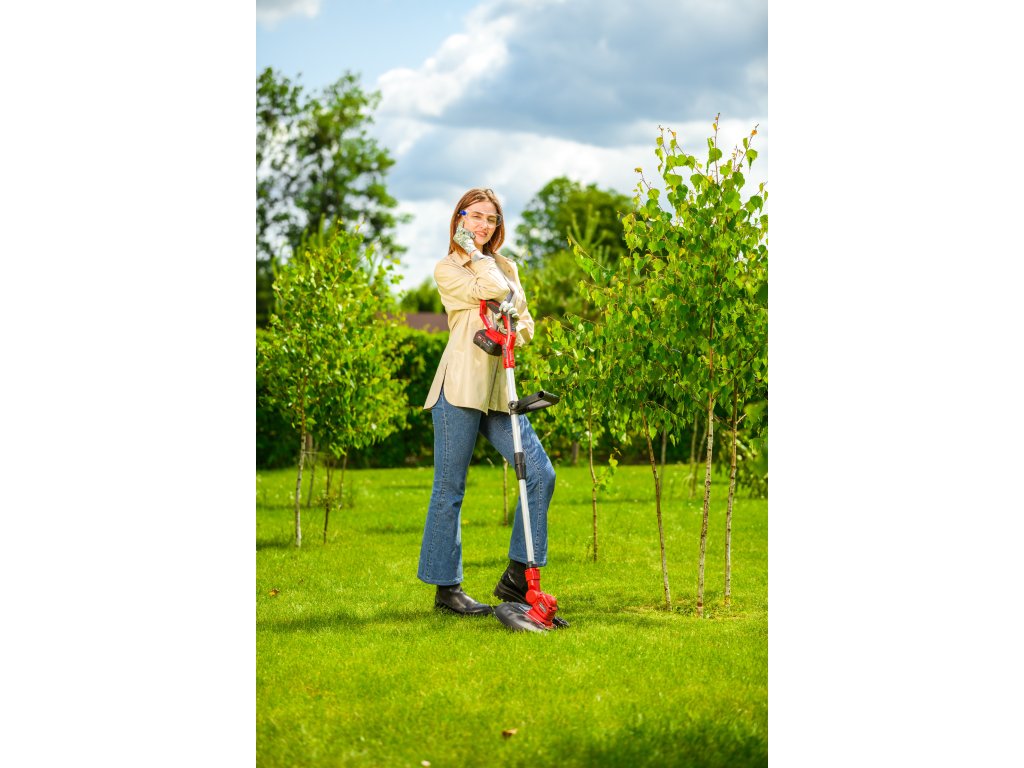 - Je vybavená automatickou strunovou hlavicou s priemerom 1,6 mm, ktorá sa sama prispôsobuje pri kosení. Regulovateľná hlava so sklonom 90° umožňuje presné zastihávanie aj na horšie dostupných miestach. Dĺžka rukoväte je nastaviteľná v rozsahu 1,0 - 1,36 m, čo prináša pohodlie pri práci.