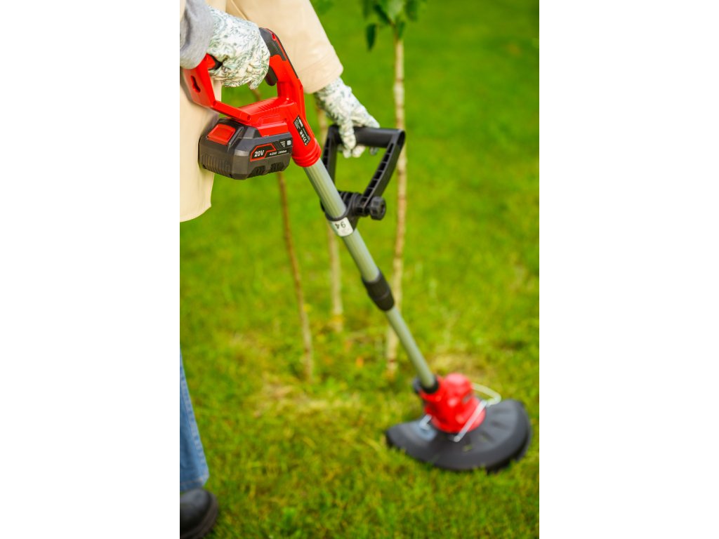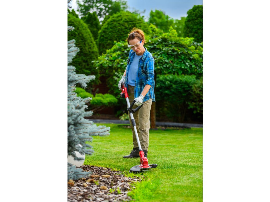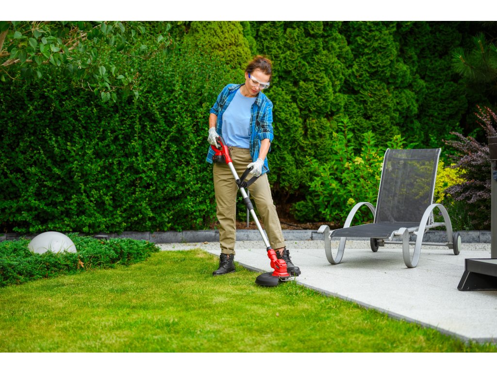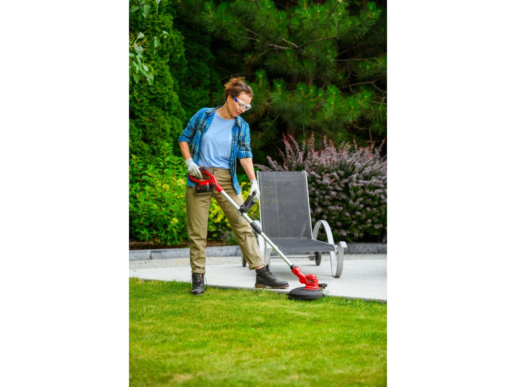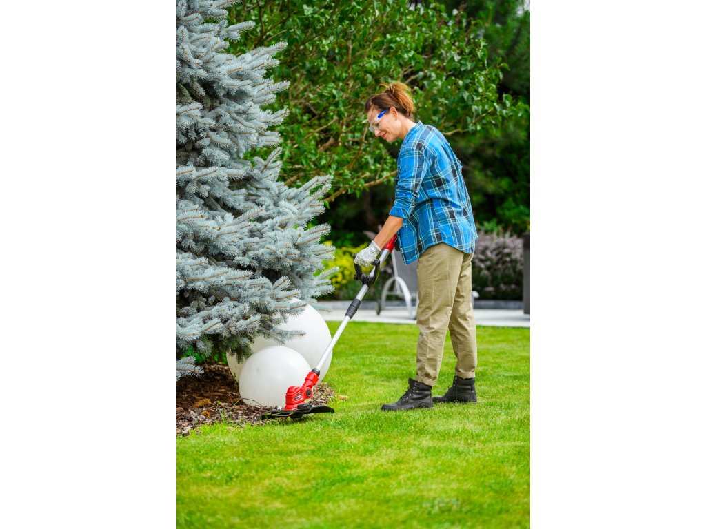 - Je vybavená automatickou strunovou hlavicou s priemerom 1,6 mm, ktorá sa sama prispôsobuje pri kosení. Regulovateľná hlava so sklonom 90° umožňuje presné zastihávanie aj na horšie dostupných miestach. Dĺžka rukoväte je nastaviteľná v rozsahu 1,0 - 1,36 m, čo prináša pohodlie pri práci.