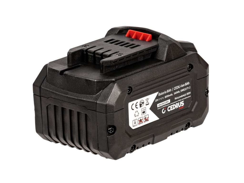 - Vďaka vysokej kapacite 8 Ah zabezpečuje dlhú výdrž aj pri náročnej prevádzke. Je kompatibilná s rýchlonabíjačkami rady Cedrus, vrátane modelov CEDFCH2.4, CEDFCH3.5, CEDDCH3.0 a CEDFCH8. Batéria je vhodná pre všetky prístroje rady POWER+ – napr. vŕtačky, kosačky, reťazové píly, fukáre, nožnice na živý plot a ďalšie.