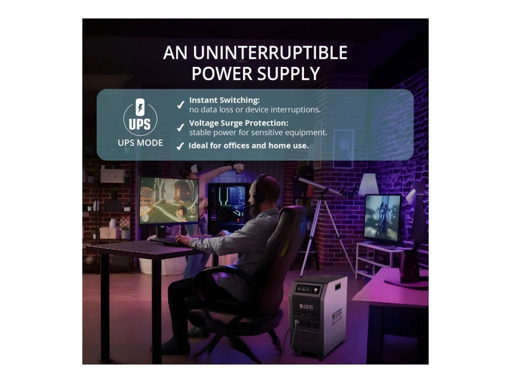 Mobilná a vysoko výkonná prenosná elektráreň s kapacitou 5120 Wh, čistým sínusovým meničom a funkciou UPS. Vhodná na zálohovanie kancelárií, domácností aj použitie na cestách. Ponúka rýchle solárne aj AC nabíjanie, prevádzku bez emisií a extrémnu životnosť cez 6000 cyklov.