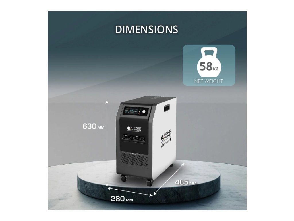 Prenosná elektráreň Könner & Söhnen KS 5200PS je navrhnutá na profesionálne aj domáce využitie ako záložný zdroj energie aj ako hlavné napájanie na miestach bez siete. Kombinuje výkonný menič 5,2 kW, inteligentný MPPT solárny regulátor a LiFePO₄ batériu s kapacitou 5120 Wh, čím zabezpečuje dlhú výdrž, bezpečnosť a vysokú efektivitu prevádzky.