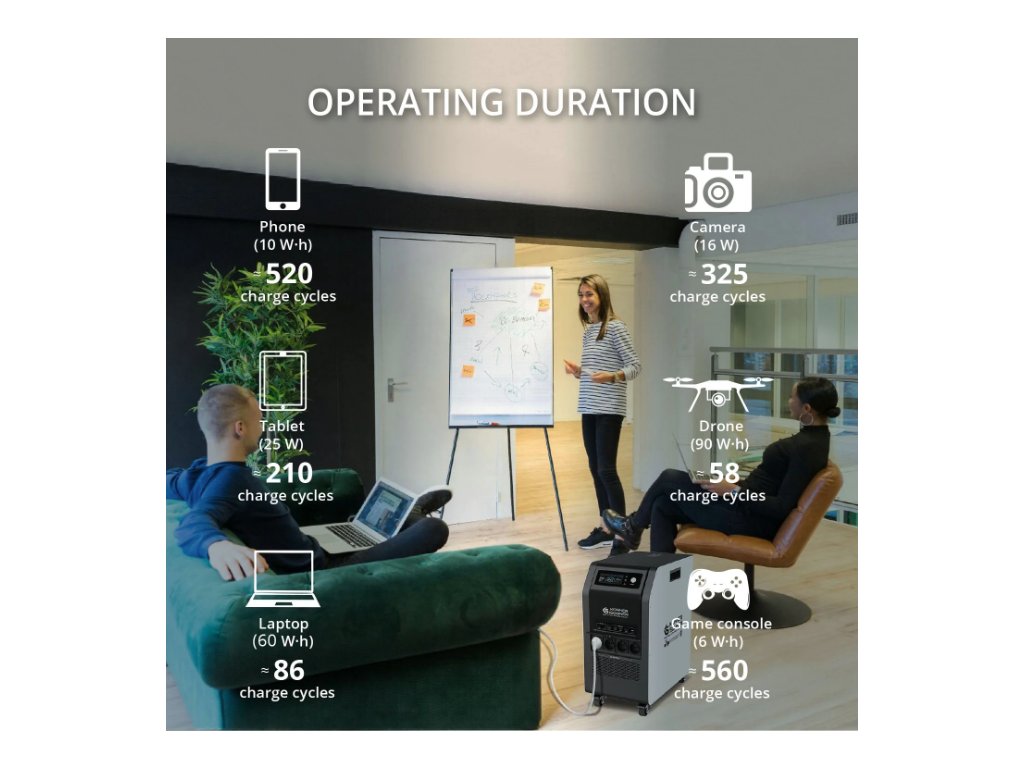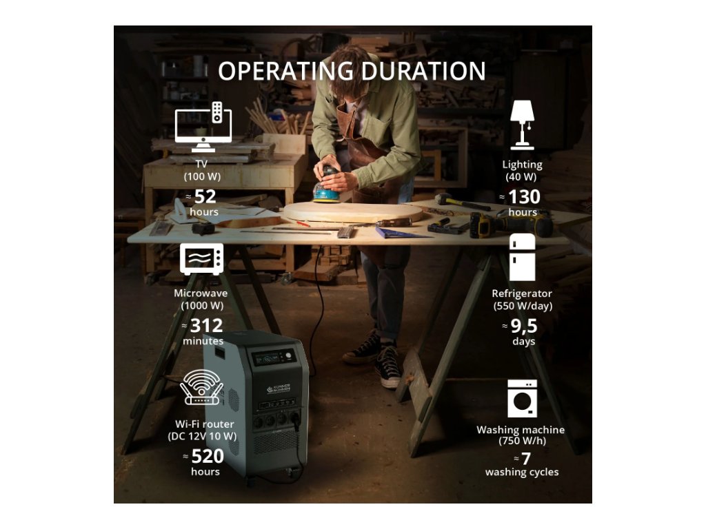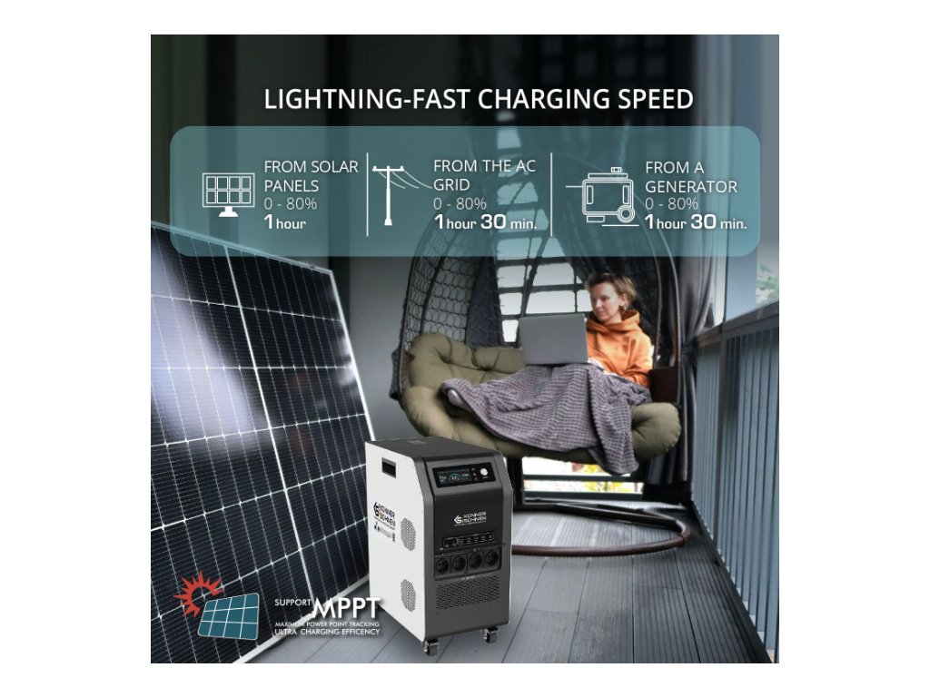 - Vďaka možnosti rýchleho solárneho nabíjania až 5 kW alebo nabíjania zo siete výkonom 4,4 kW možno stanicu doplniť až na 80 % za iba 1,5 hodiny. Technológia čistej sínusovej vlny zabezpečuje napájanie aj tých najcitlivejších zariadení, zatiaľ čo integrovaná funkcia UPS s prepnutím do 10 ms ochráni vaše zariadenia aj počas výpadkov siete.
