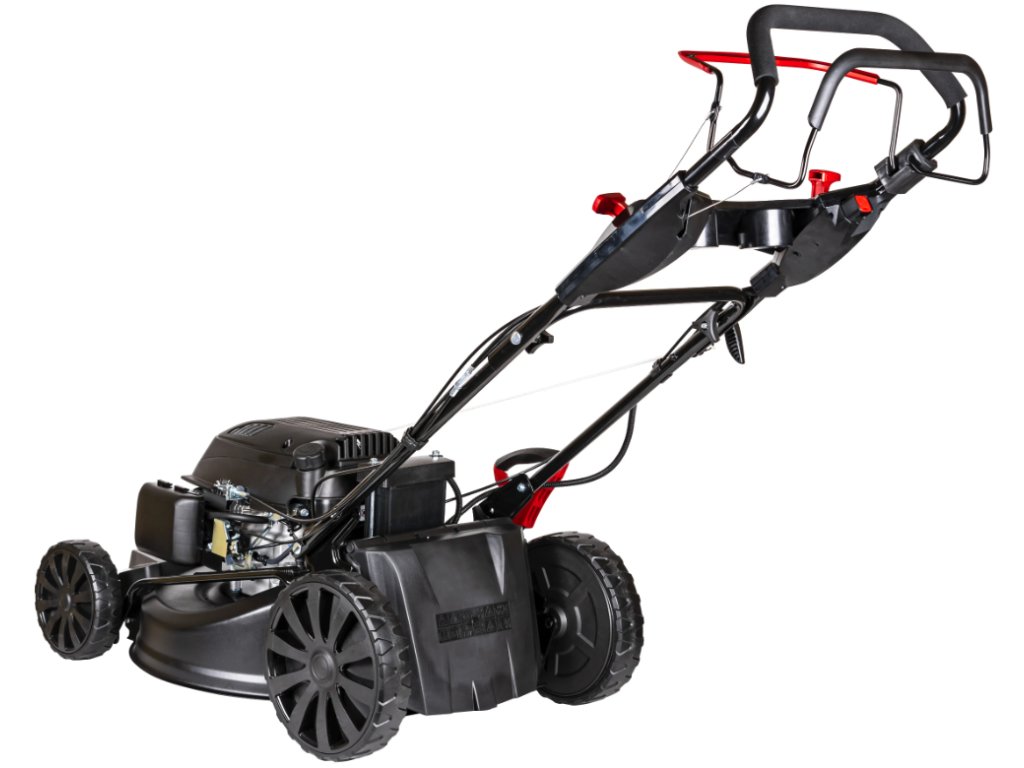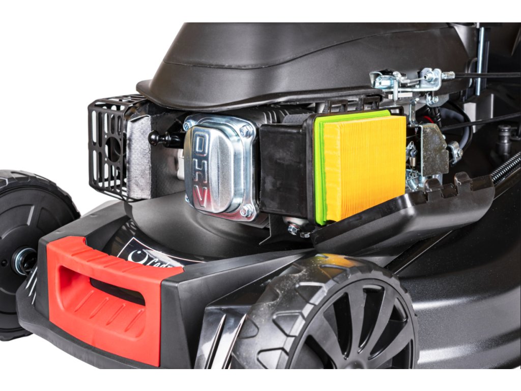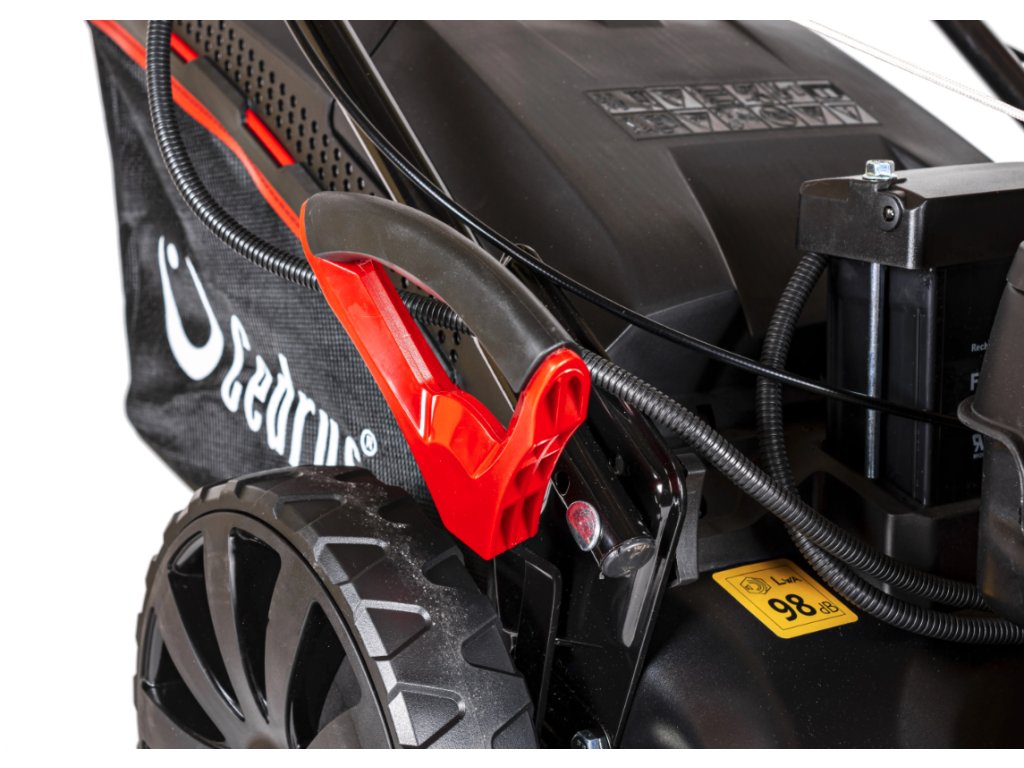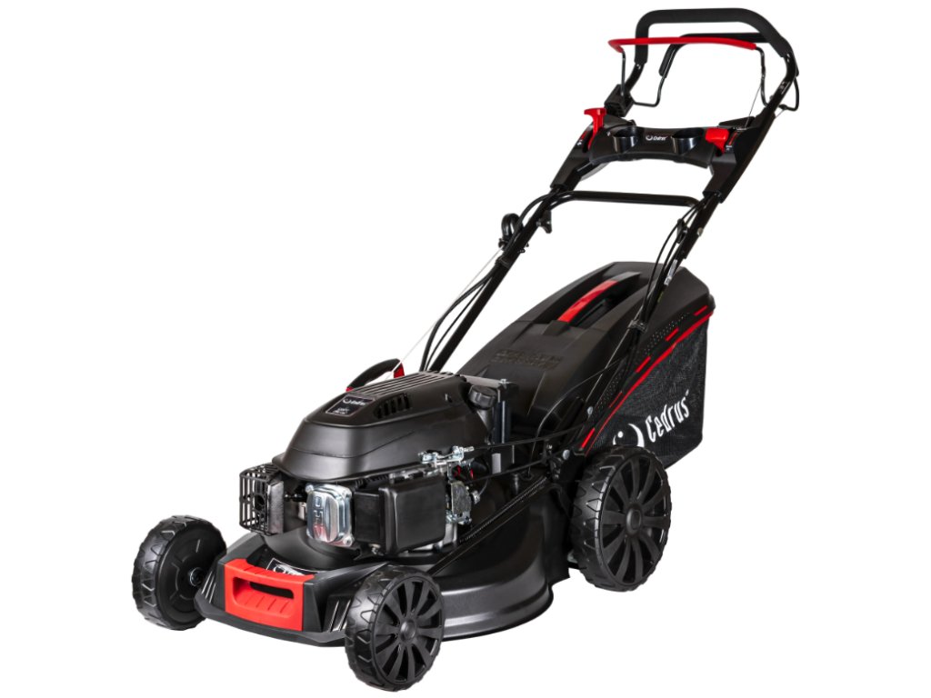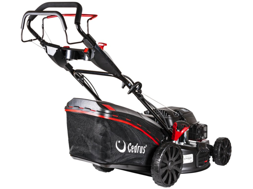 Motor Cedrus 196cm³, šírka strihu 53 cm, zberný kôš na trávu 65 l, centrálne nastavenie výšky, 3v1 (vyprazdňovanie zberného koša, mulčovanie, bočný výhoz), veľké zadné kolesá, samojazdná, elektrický štartér.