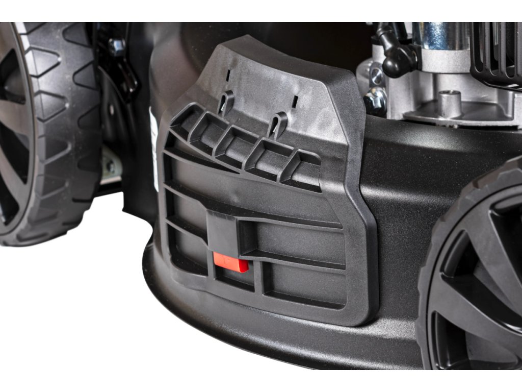 - Pohodlné ovládanie: Samohybný pohon a ergonomická rukoväť robia kosenie trávnika jednoduché a príjemné.