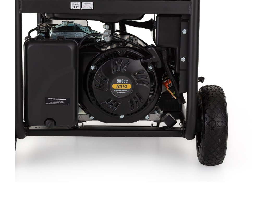 - Generátor je poháňaný výkonným motorom R500 (500 cm³), ktorý je štvortaktný, jednovalcový, vzduchom chladený a zaisťuje dlhú životnosť aj spoľahlivú prevádzku.