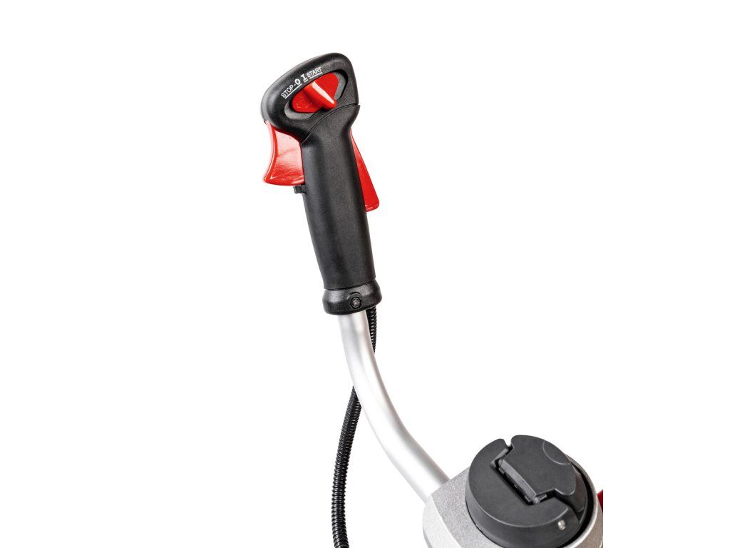 - Vďaka antivibračnému uchyteniu rukoväti je práca výrazne pohodlnejšia aj pri dlhšom používaní. Ergonomická dvojitá rukoväť (riadidlá) umožňuje prirodzený pohyb pri kosení a presné vedenie stroja.