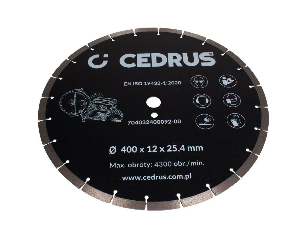 Originálny diamantový kotúč Cedrus pre model CEDPC400-94 je určený na efektívne rezanie betónu, muriva, tehál a ďalších stavebných materiálov. Vhodný na profesionálne aj stavebné použitie.