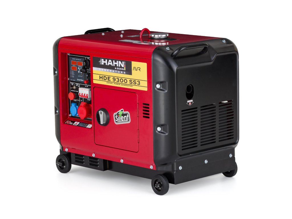 Výkonná dieselová elektrocentrála Hahn & Sohn HDE 9300SS3 s maximálnym výkonom 6,5 kW (400 V) poskytuje spoľahlivý trojfázový aj jednofázový zdroj energie s nízkou spotrebou a tichou prevádzkou.