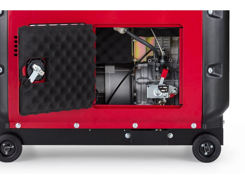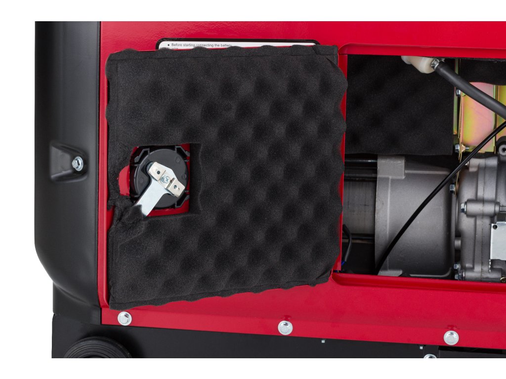 - Kryt generátora je zvukotesný, čím znižuje hladinu hluku na iba 70 dB (vo vzdialenosti 7 m) – ideálne pre použitie aj v obytných oblastiach.