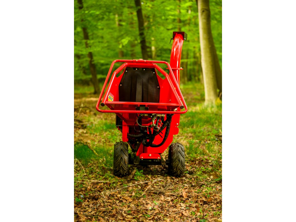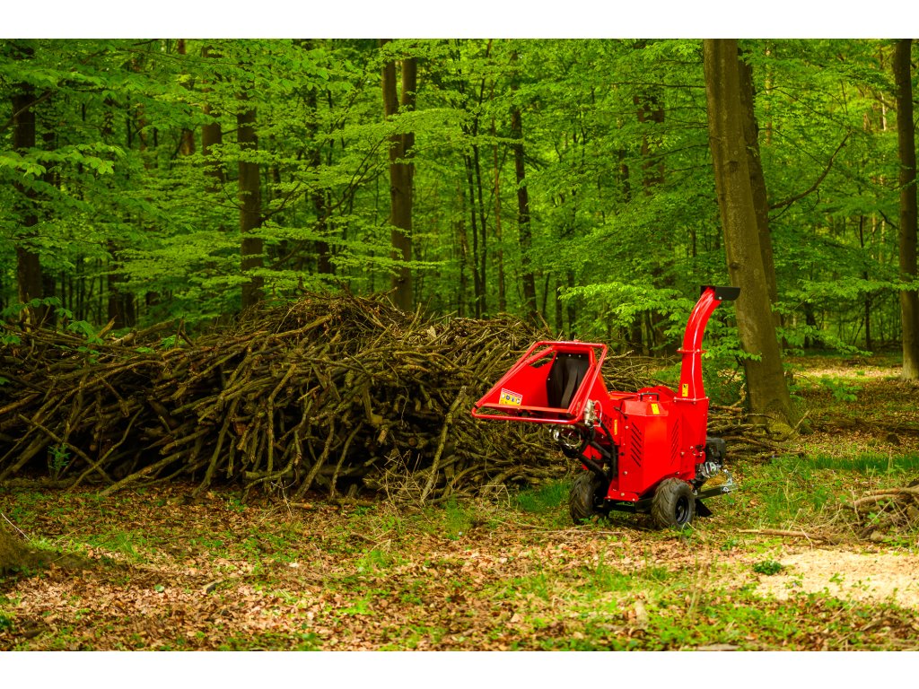 - Drviacu jednotku tvorí kombinácia 2 nožov na rotore, 1 protinoža a 10 drviacich čepelí, ktoré efektívne spracujú aj väčšie konáre. Maximálny priemer spracovávaného materiálu je 12 cm. Výstupný komín je plne otočný a výškovo nastaviteľný, čo umožňuje jednoduché riadenie smeru výhozu.