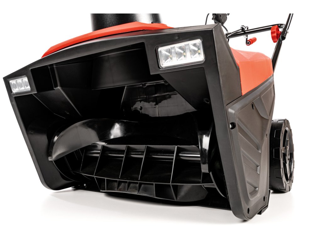 - Táto fréza je vybavená LED osvetlením, ktoré zlepšuje viditeľnosť pri práci v zhoršených svetelných podmienkach, a regulovateľným komínom, ktorý umožňuje prispôsobiť smer vyhadzovania snehu. Ochrana proti preťaženiu s manuálnym opätovným spustením zabezpečuje bezpečné používanie a dlhú životnosť zariadenia.