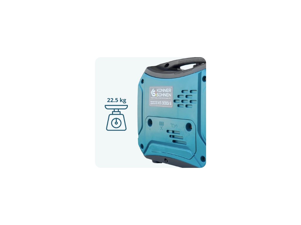 Könner & Söhnen KS 3000i S je moderná invertorová elektrocentrála určená na spoľahlivé napájanie citlivej elektroniky a domácich spotrebičov.