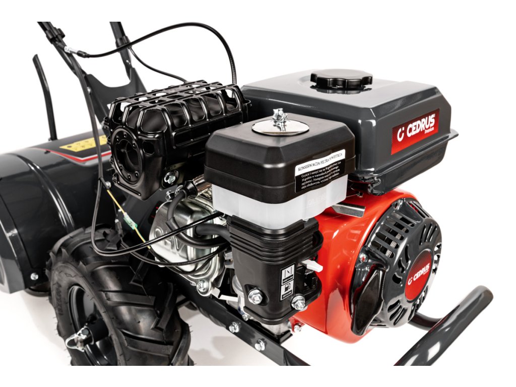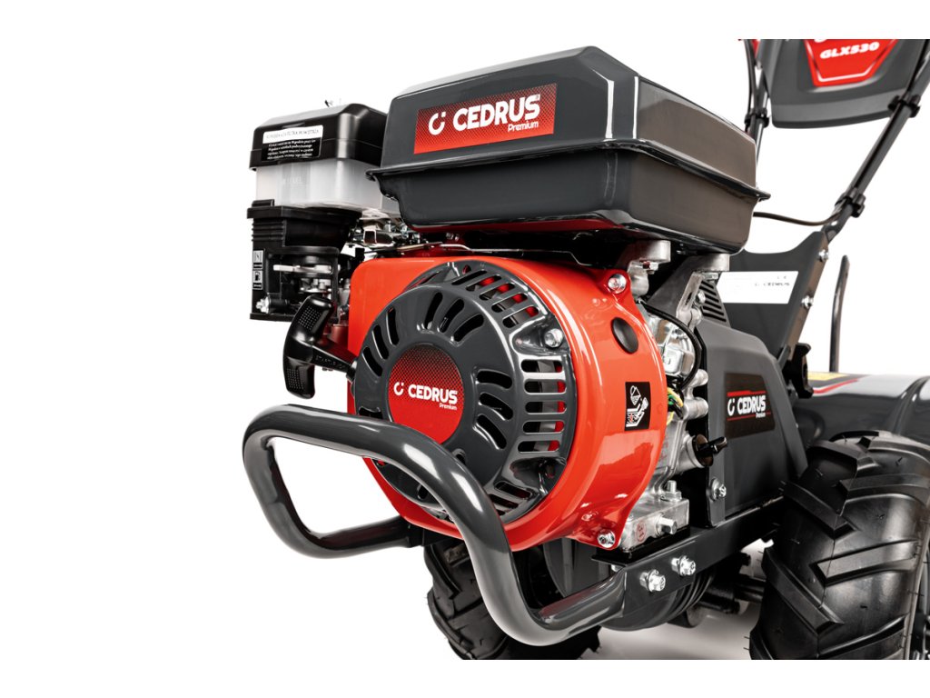 Cedrus GLX530 Premium je benzínový kultivátor navrhnutý na jednoduché a efektívne spracovanie pôdy v záhradách, sadoch alebo na menších políčkach. Robustná konštrukcia v kombinácii s výkonným štvortaktným motorom Rato R210 zaručuje vysokú spoľahlivosť a dlhú životnosť. Motor s výkonom 4,1 kW a objemom 212 cm³ dosahuje otáčky až 3600 ot./min, čo umožňuje bezproblémové spracovanie aj tvrdšej pôdy.