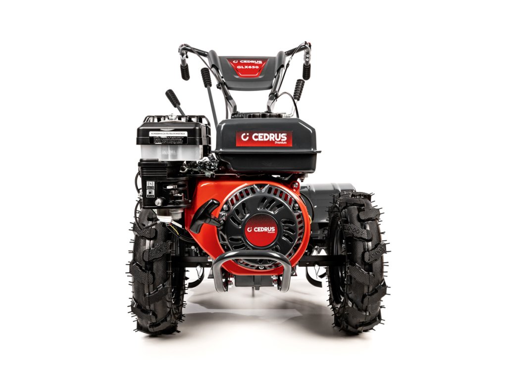 Cedrus GLX650 Premium je benzínový kultivátor určený pre náročných používateľov, ktorí požadujú kvalitné spracovanie pôdy aj na väčších plochách. Poháňa ho osvedčený motor Rato R210 s výkonom 4,1 kW a zdvihovým objemom 212 cm³, ktorý poskytuje dostatočnú silu aj pri práci v ťažkej pôde. Vďaka dvorýchlostnej prevodovke vpred a jednej vzad umožňuje stroj prispôsobiť výkon podmienkam terénu a typu pôdy.