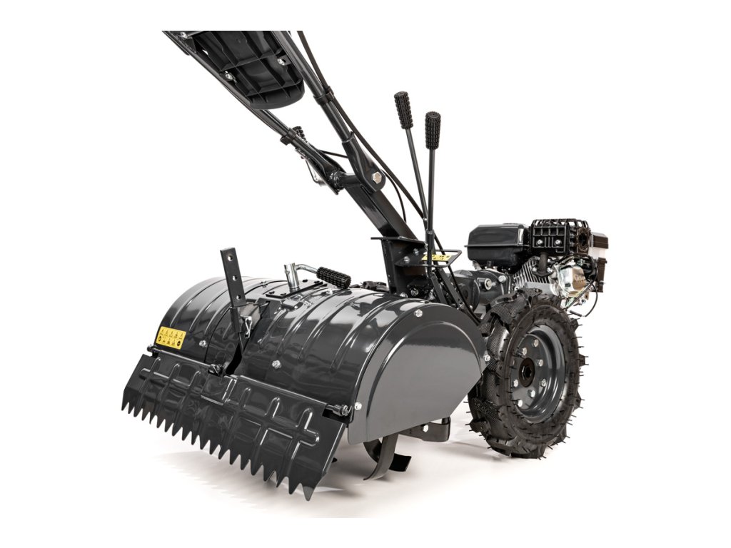 - Tento model je ideálny na prípravu pôdy pred sejbou, kyprenie záhonov, zapracovanie hnojiva či likvidáciu buriny. Vďaka nízkemu ťažisku a ergonomicky tvarovaným rukovätiam je ovládanie pohodlné a bezpečné.
