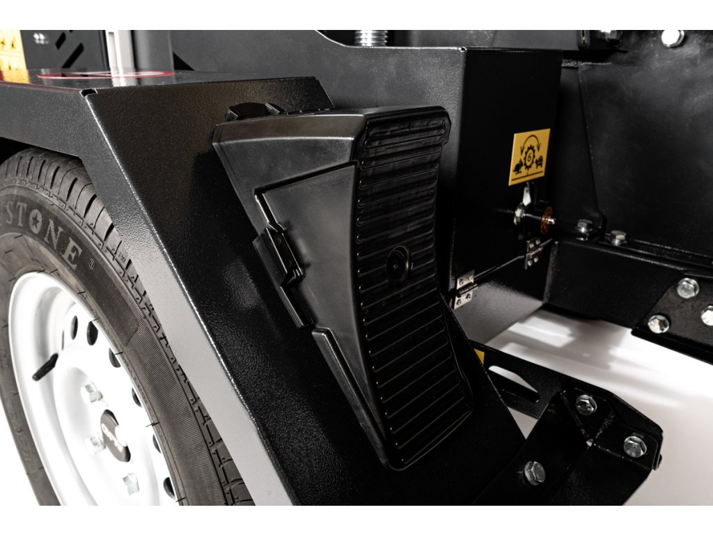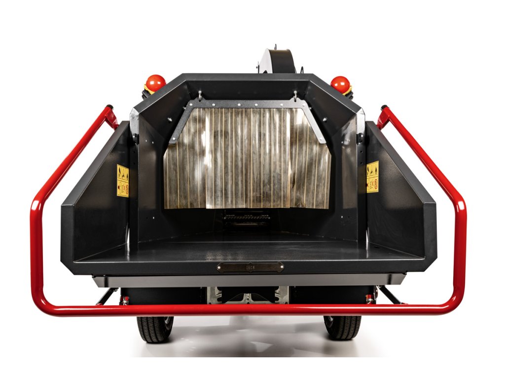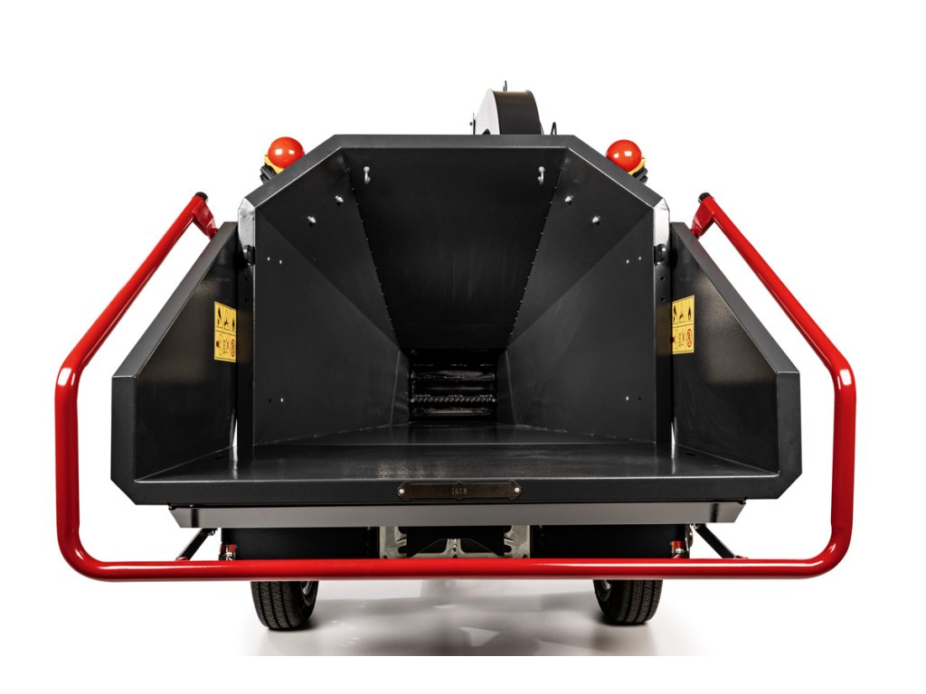 - Štiepkovač využíva automatický hydraulický podávač riadený systémom iFS, ktorý reguluje prísun materiálu podľa rýchlosti otáčania rezného kotúča. Tento systém chráni motor a zvyšuje celkovú efektivitu a bezpečnosť.