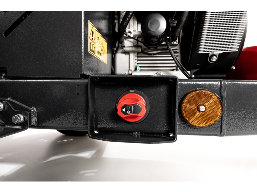 - Otočný komín (360°) a deflektor (90°) umožňujú presné smerovanie odhodu. Veľká 24l nádrž na palivo a 25l hydraulický okruh zaisťujú dlhú prevádzku bez prerušenia. Príves AL-KO s brzdami a osvetlením spĺňa legislatívne požiadavky na jazdu po ceste (kategória B/B).