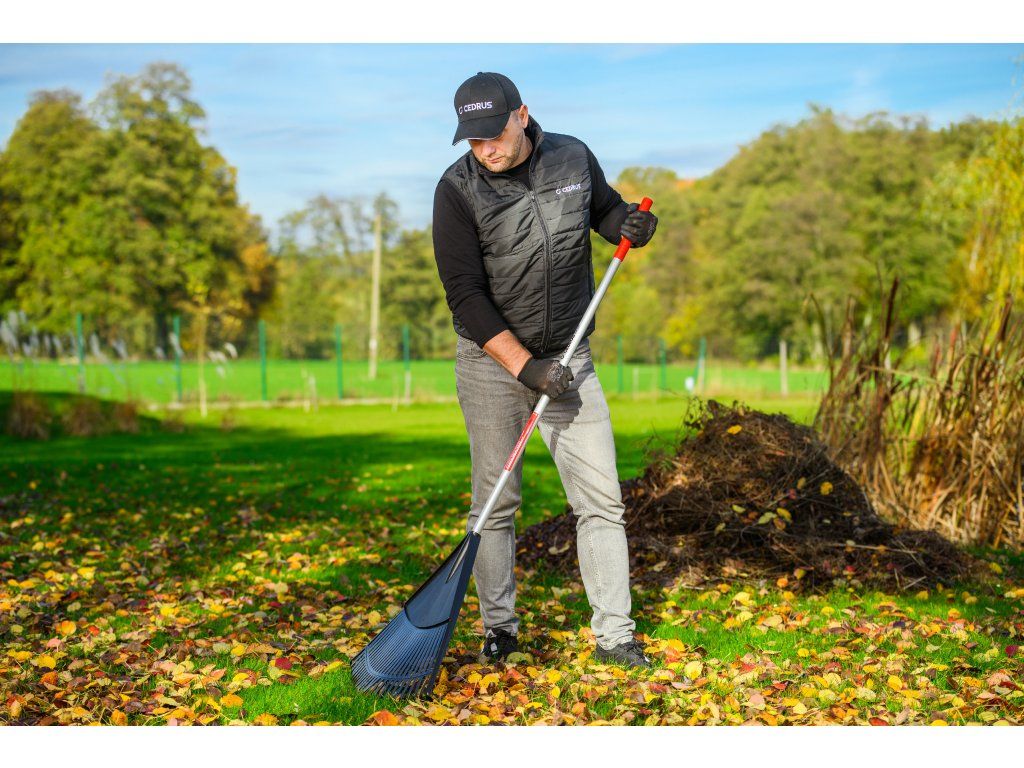 Záhradné hrable Cedrus RK26T sú navrhnuté na jednoduché a rýchle zhrabovanie lístia, trávy či iných nečistôt z trávnikov, ciest alebo dvorov. Široká pracovná hlavica so šírkou 600 mm s 26 pružnými zubami umožňuje efektívnu prácu aj na rozľahlých plochách, pričom šetrne zaobchádza s trávnikom.