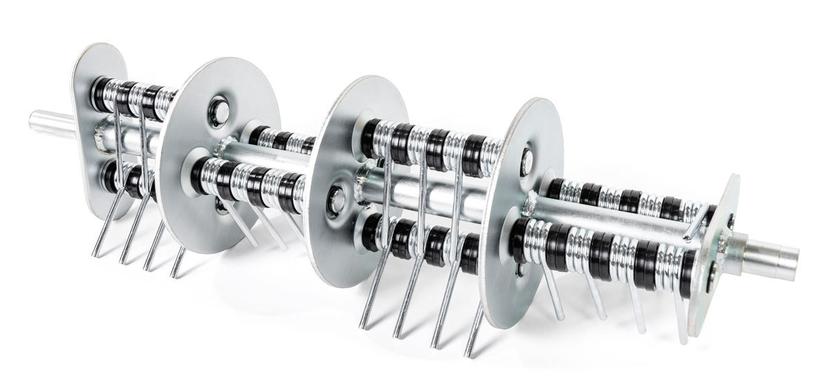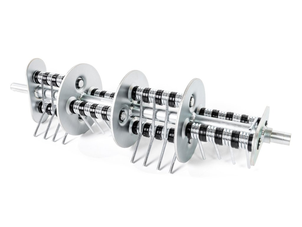 - Vďaka vysokej tuhosti pružín dosahuje valec vynikajúce výsledky pri mechanickom čistení trávnika a obnove jeho hustoty. Tento spôsob ošetrenia výrazne zlepšuje prevzdušnenie pôdy, prienik živín ku koreňom a odvod vody z povrchu, čo vedie k rýchlejšiemu rastu zdravej trávy.
