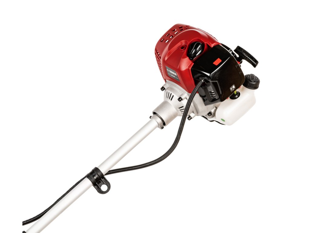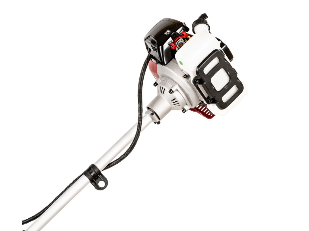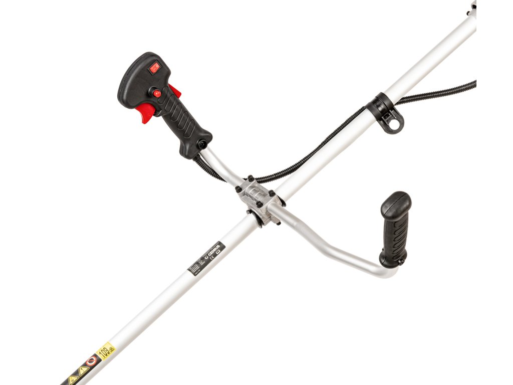 - Zariadenie je vybavené hnacím hriadeľom s priemerom 26 mm, ktorý je odolný voči ohybom a vibráciám. Vďaka palivovej nádrži s objemom 0,75 l možno pracovať dlhšie bez prerušenia. Nízka hmotnosť 7,1 kg a ergonomické popruhy zaisťujú pohodlie pri dlhšej práci.