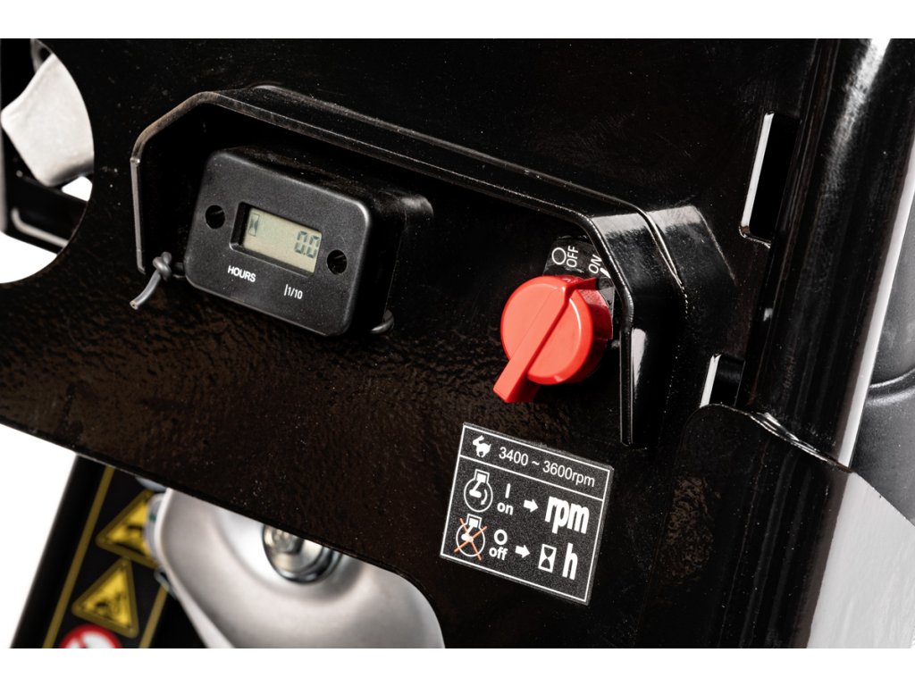 - Vďaka reverznému chodu (vpred/vzad) je manipulácia so strojom veľmi jednoduchá a presná, čo výrazne zvyšuje efektivitu pri práci na väčších alebo členitých plochách. Stroj je vybavený japonskými ložiskami NSK (C4), ktoré zaisťujú mimoriadne plynulý chod a dlhú životnosť prevodových komponentov. Samozrejmosťou je ochranný rám motora, transportné kolieska a počítadlo motohodín, ktoré umožňuje jednoduché sledovanie prevádzkovej doby.