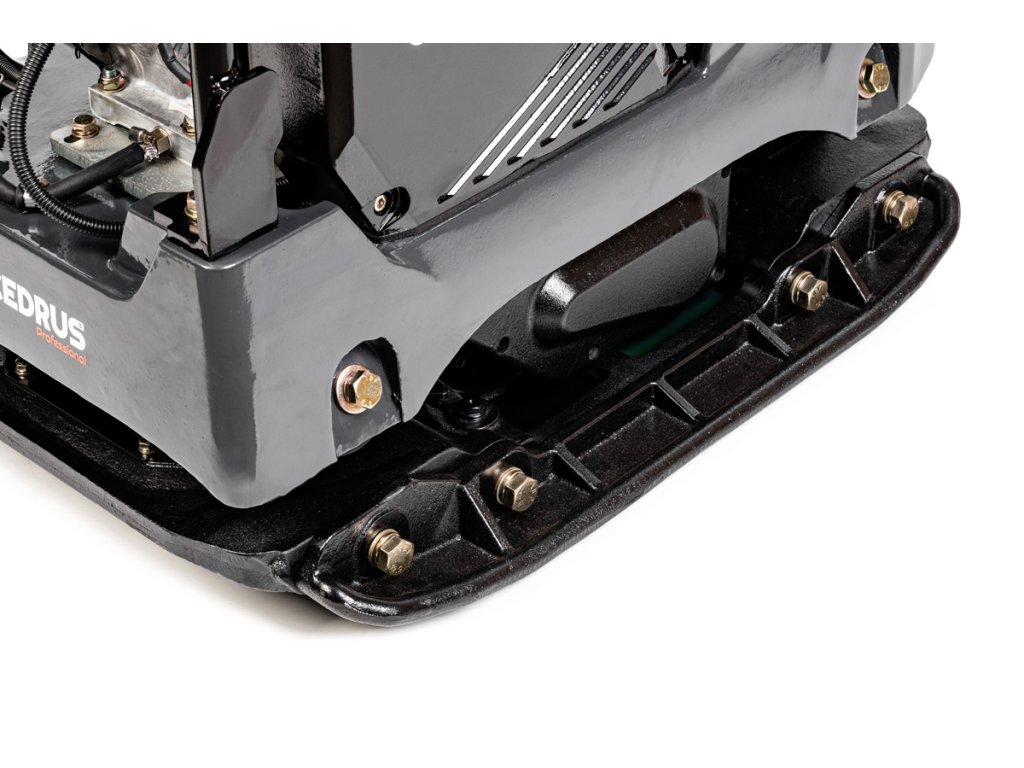 - Doska s rozmermi 86 × 44,5 cm generuje hutniacu silu 46 kN a umožňuje dosiahnuť hĺbku hutnenia až 80 cm, vďaka čomu je vhodná aj na hutnenie hrubých vrstiev zeminy, štrku a podkladov pod komunikácie. Vybavenie zahŕňa počítadlo motohodín, japonské ložiská NSK (C4) pre plynulý chod a ochranný rám motora zvyšujúci bezpečnosť aj odolnosť.