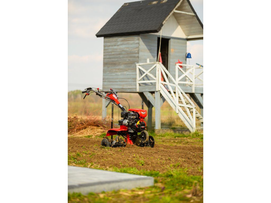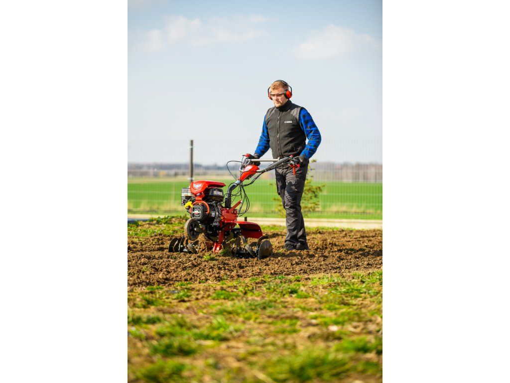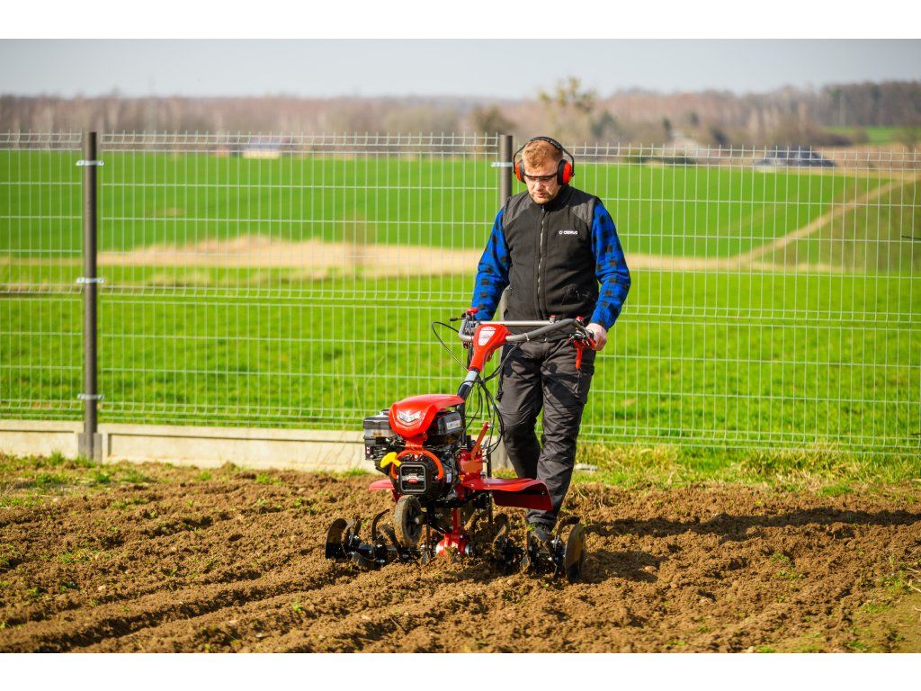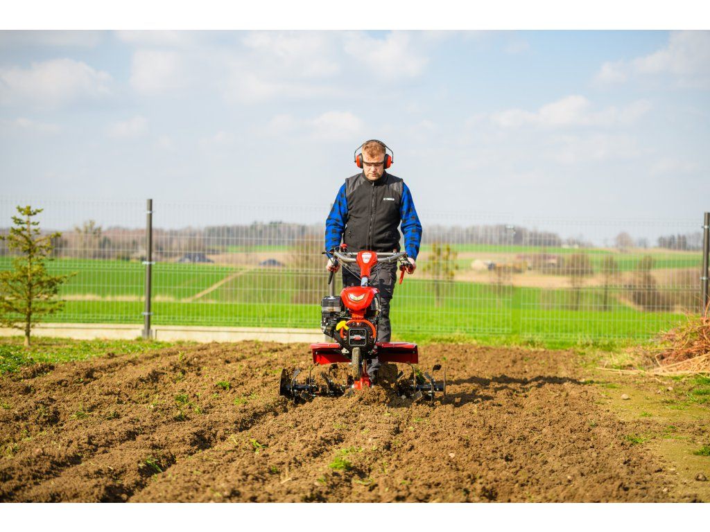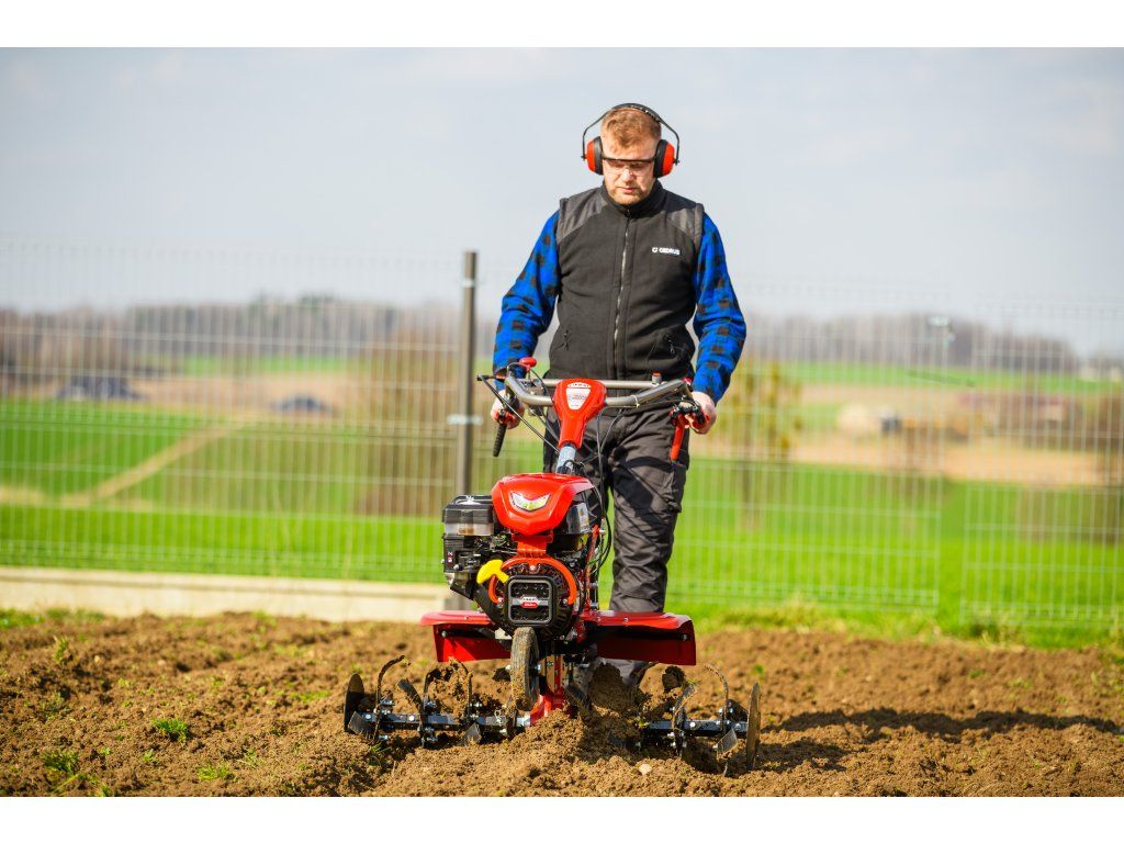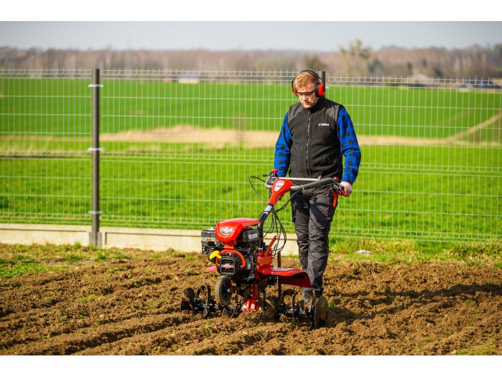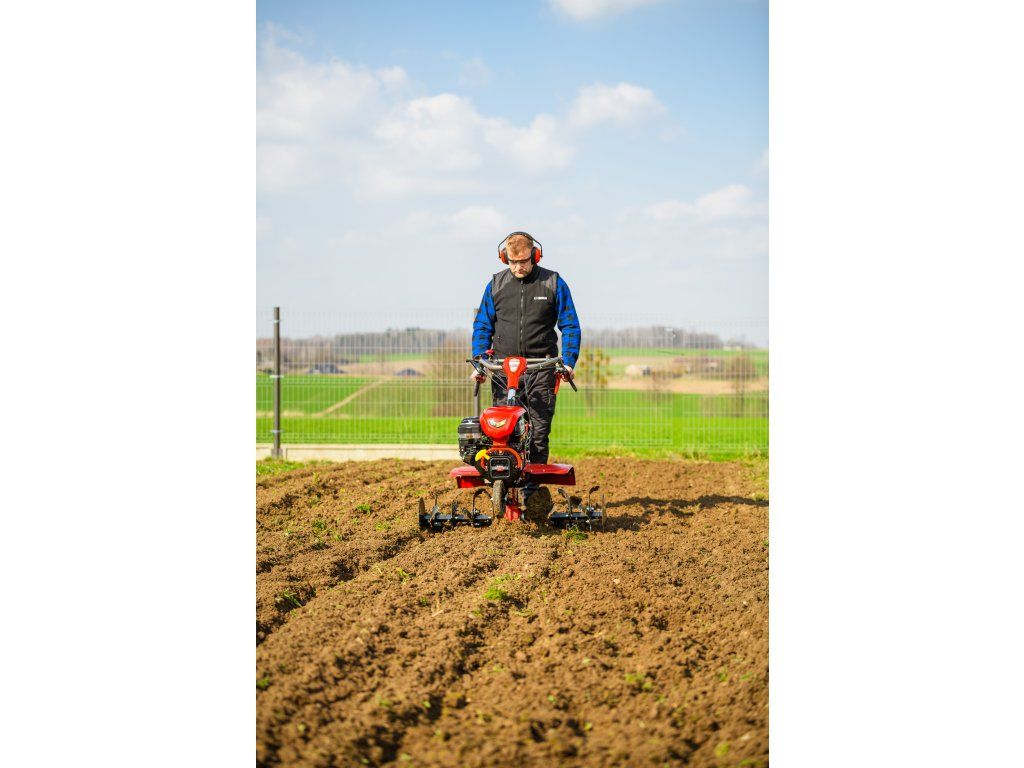 - Pracovná šírka 103 cm a hĺbka do 180 mm umožňujú rýchle a efektívne spracovanie rozsiahlych záhonov, polí alebo sadov. Stroj disponuje 2 rýchlosťami vpred a 1 vzad, ktoré zabezpečujú optimálnu ovládateľnosť. Vďaka silnej prevodovke s objemom oleja 2,2 litra a 8 pracovným nožom (4+4) je zaručená dlhá životnosť a výborný výkon aj v tvrdej pôde.