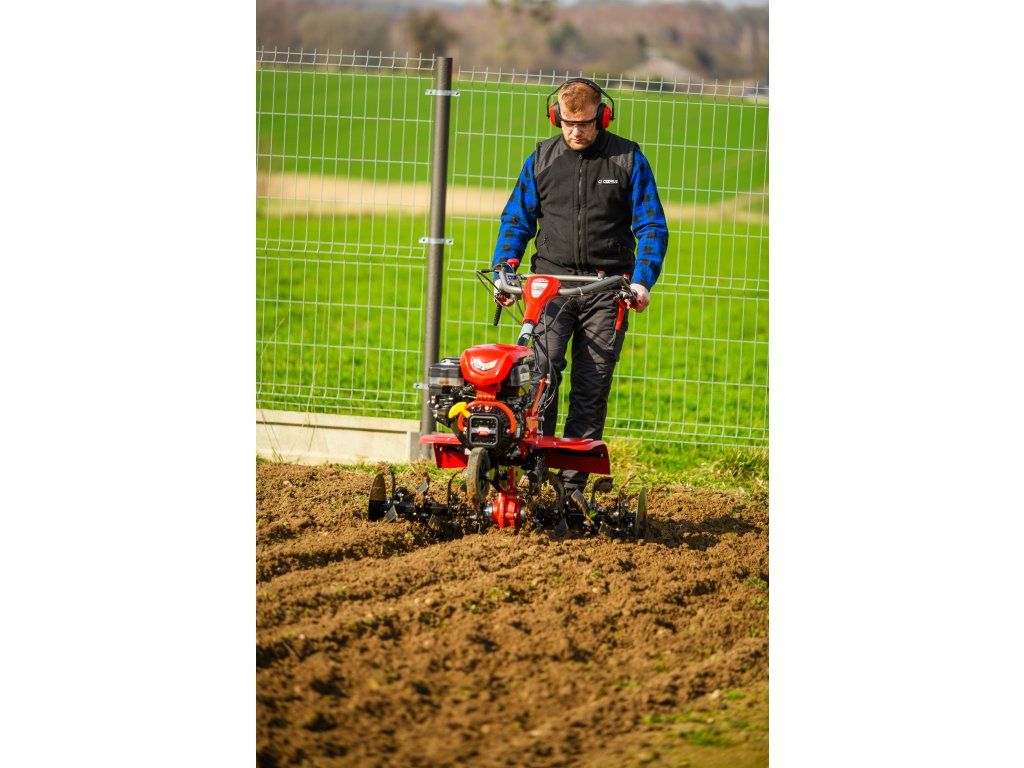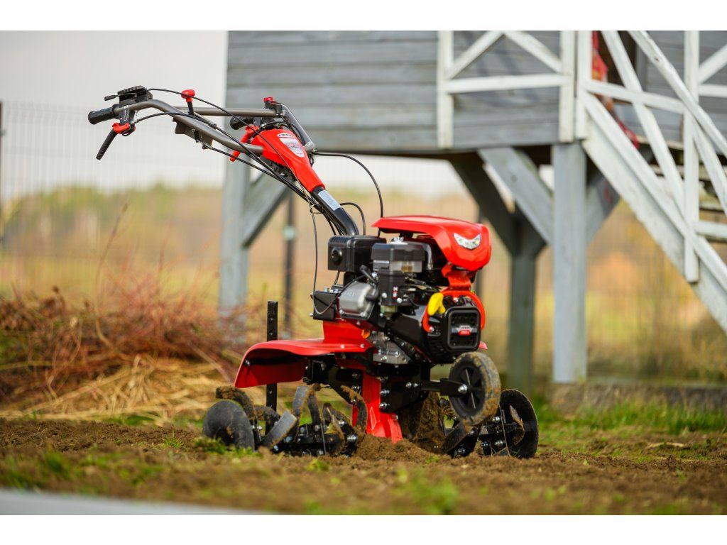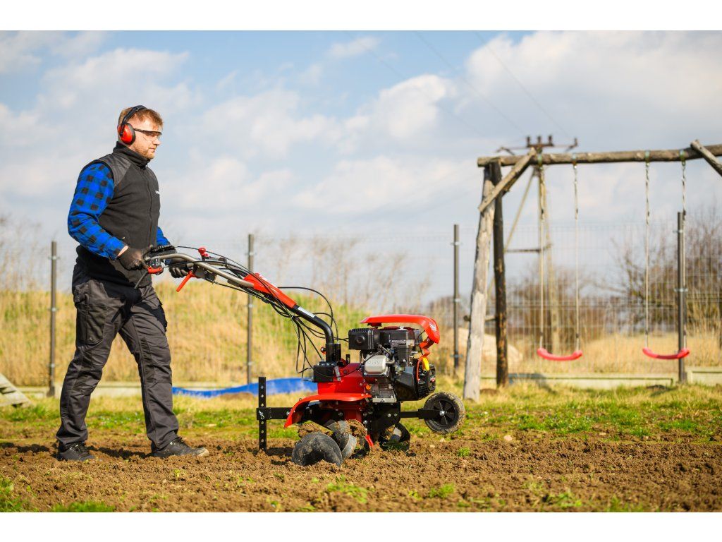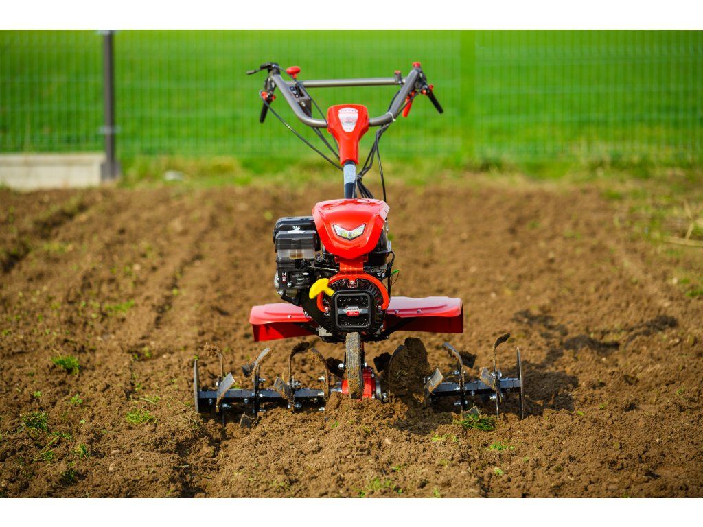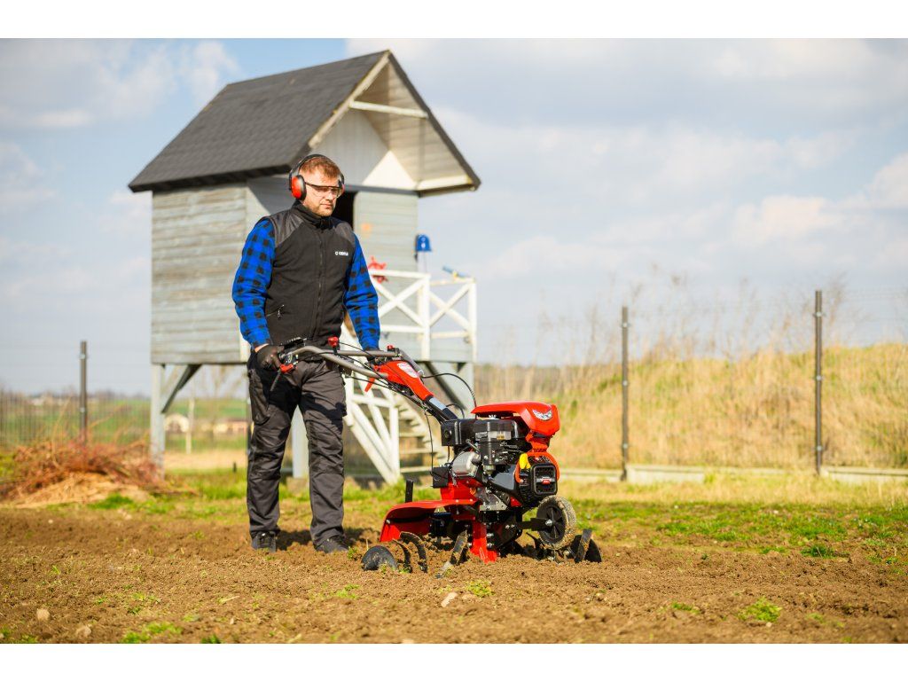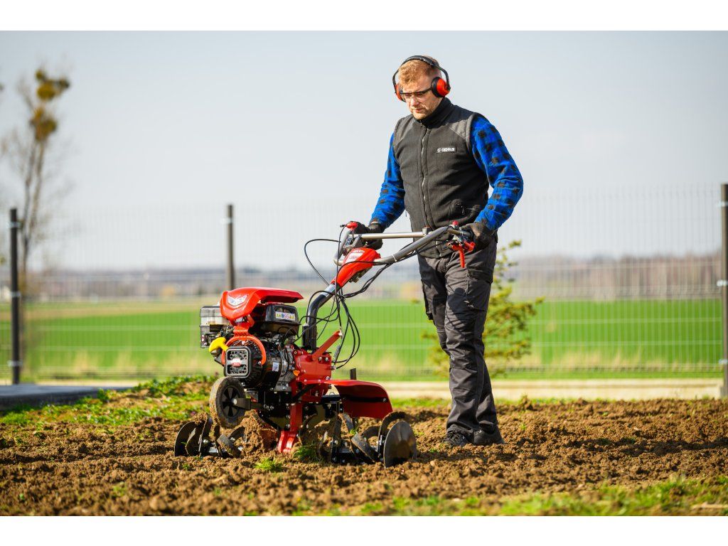 - Pracovná šírka 103 cm a hĺbka do 180 mm umožňujú rýchle a efektívne spracovanie rozsiahlych záhonov, polí alebo sadov. Stroj disponuje 2 rýchlosťami vpred a 1 vzad, ktoré zabezpečujú optimálnu ovládateľnosť. Vďaka silnej prevodovke s objemom oleja 2,2 litra a 8 pracovným nožom (4+4) je zaručená dlhá životnosť a výborný výkon aj v tvrdej pôde.