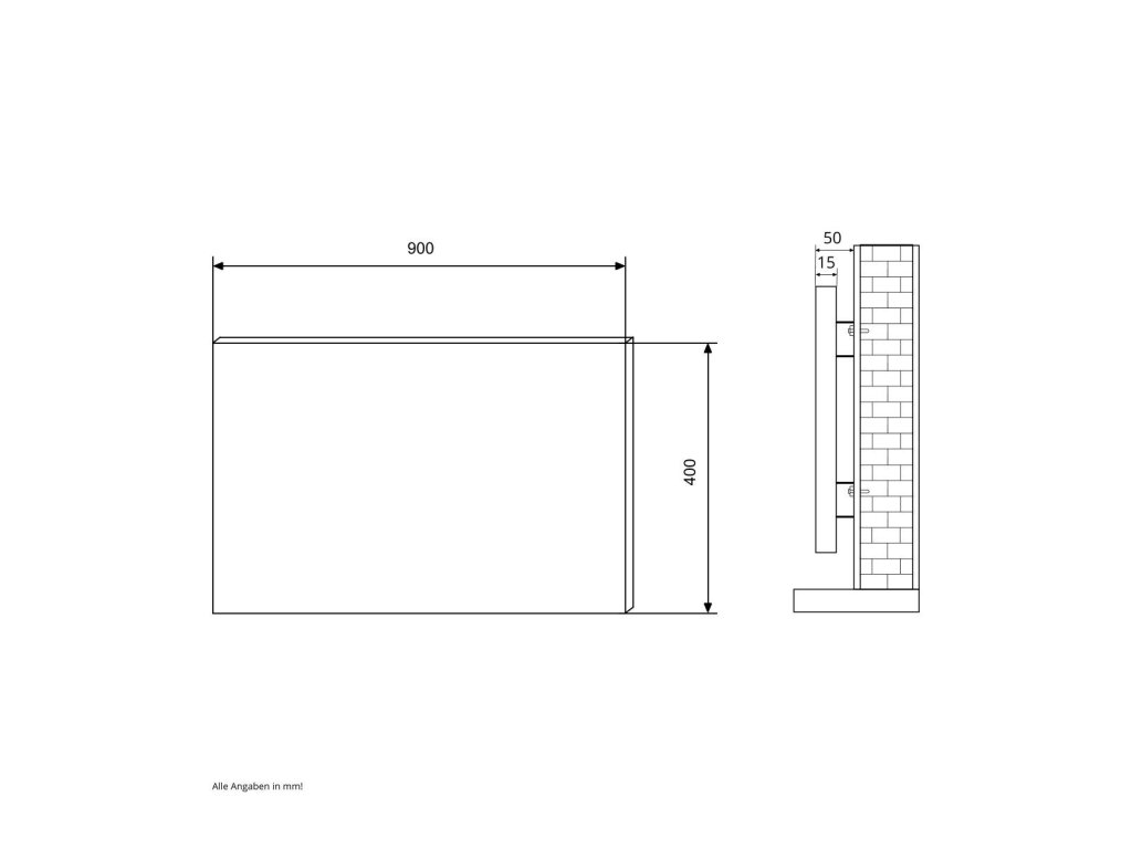- Panel s rozmermi 900 × 400 × 15 mm možno namontovať na stenu alebo na strop, a to horizontálne aj vertikálne. Vďaka štíhlemu dizajnu s hĺbkou iba 15 mm a minimálnej vzdialenosti od steny 33 mm sa jednoducho integruje aj do menších priestorov, napríklad pod okná alebo do úzkych miestností. Povrchová úprava v odtieni signálna biela (RAL 9003) zaisťuje moderný a decentný vzhľad.