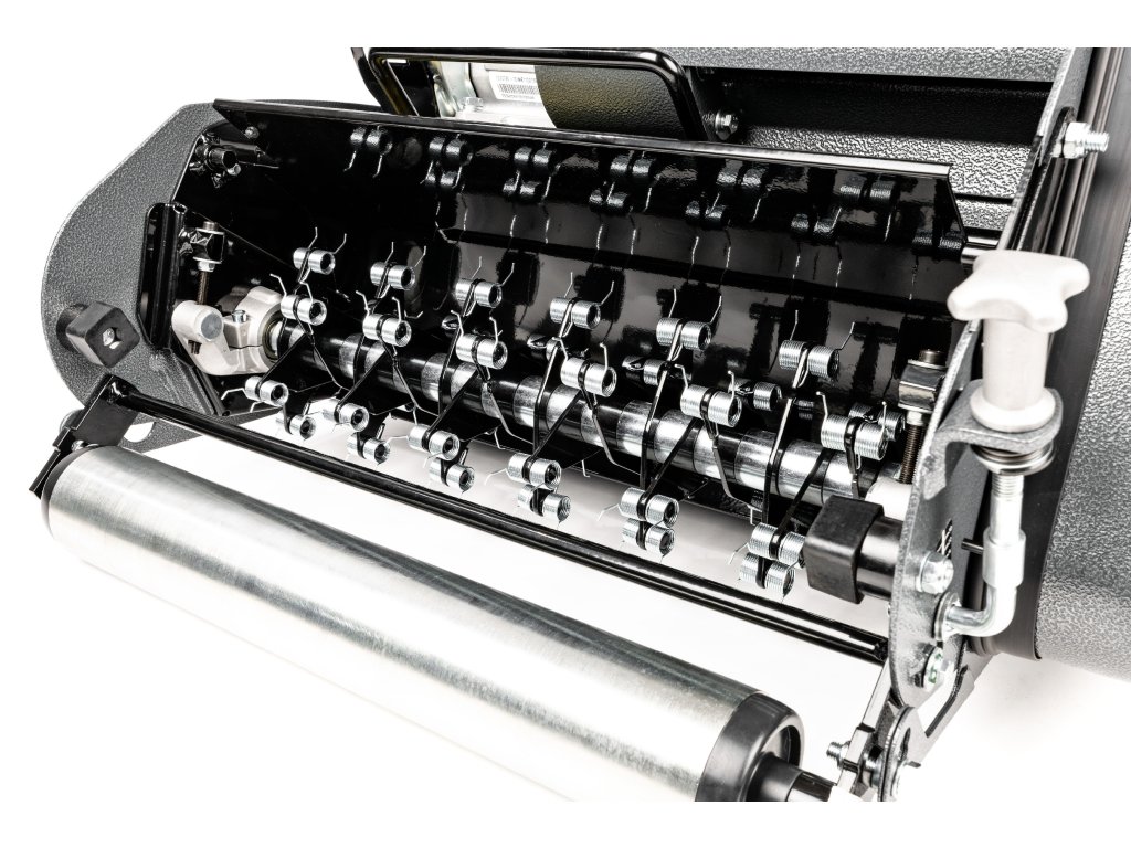 - Pevná konštrukcia a precízne rozmiestnené pružinové nože umožňujú rovnomerné a účinné spracovanie povrchu. Skarifikácia napomáha rýchlejšiemu rastu trávnych výhonkov a znižuje riziko výskytu plesní a chorôb. Jednoduchá inštalácia do vretenovej kosačky robí túto kazetu ideálnym riešením pre domáce aj profesionálne použitie.