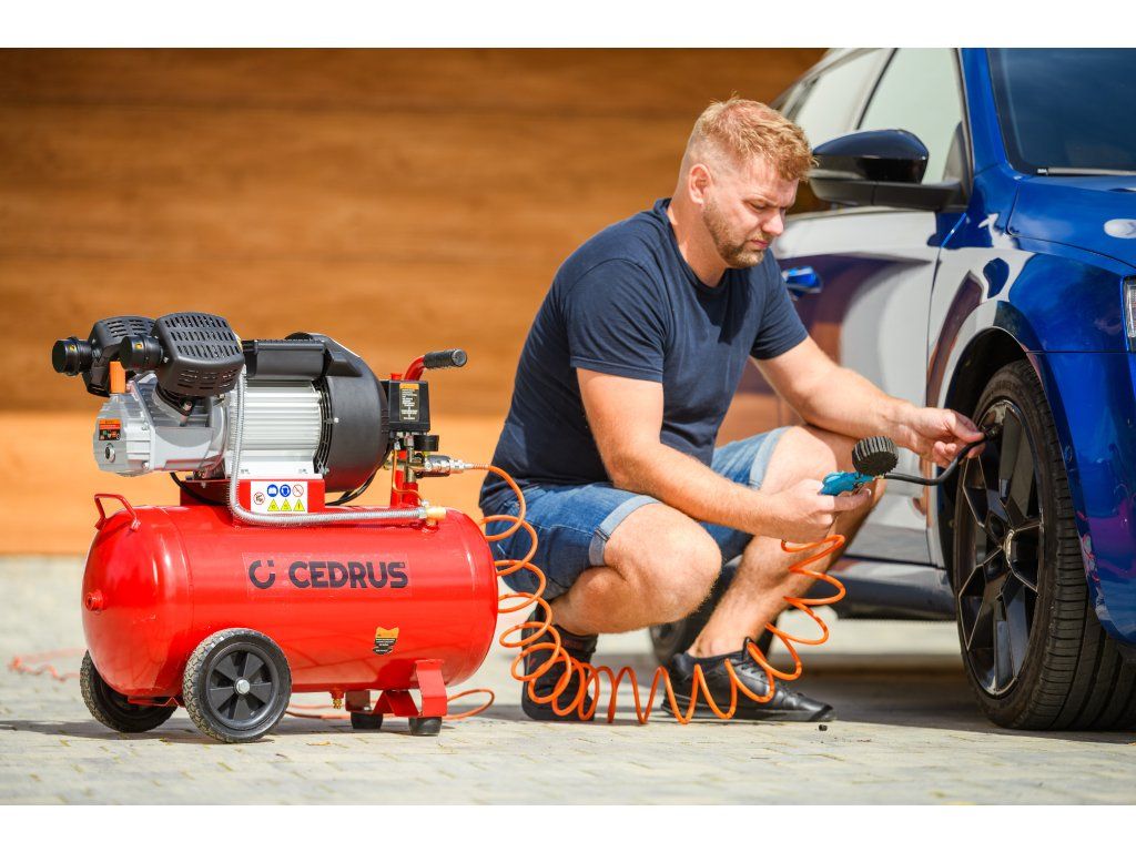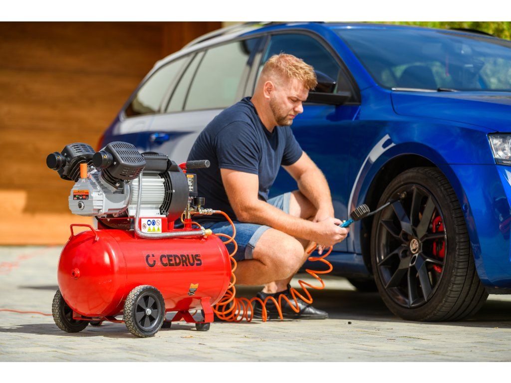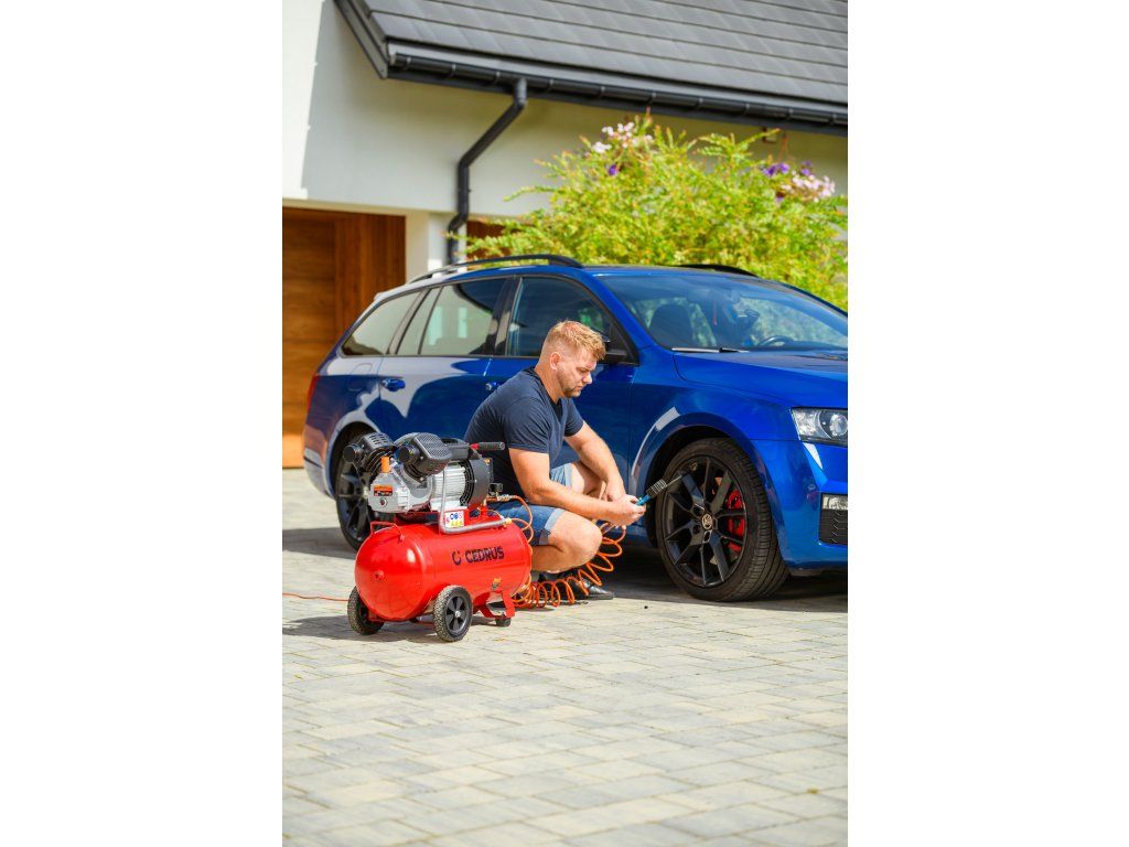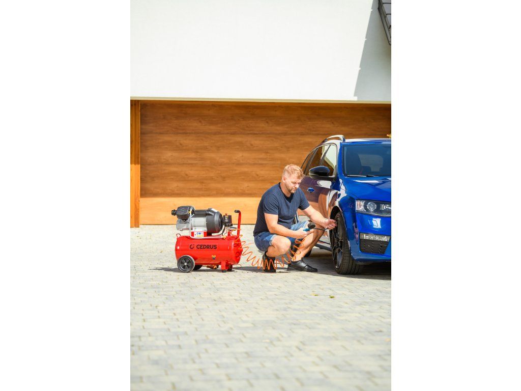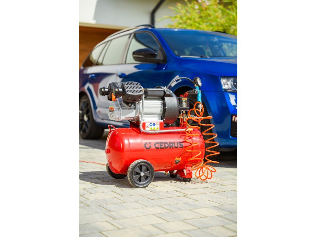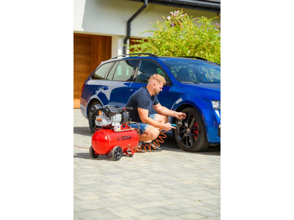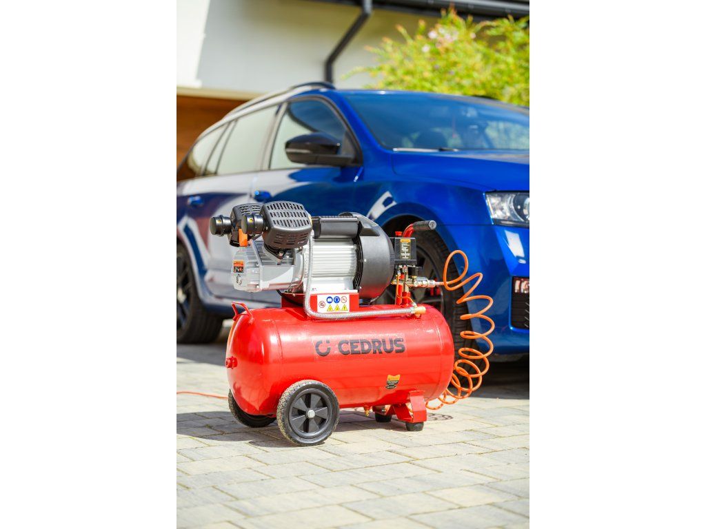 Výkonný a robustný kompresor Cedrus CEDKM50-2T s dvojvalcovou jednotkou, tlakovou nádobou s objemom 50 l a výkonom 2,24 kW. Vhodný na pohon pneumatického náradia, dielenské práce aj servisné použitie. Napájanie 230 V.