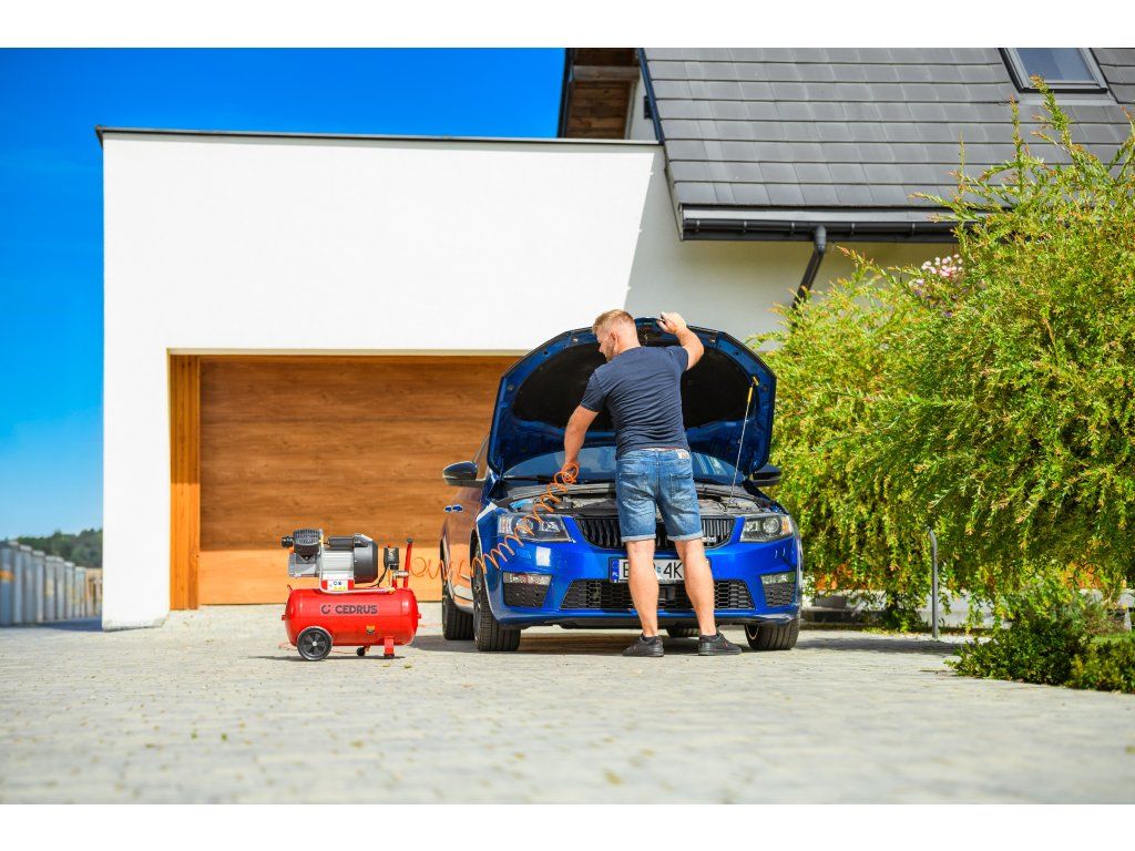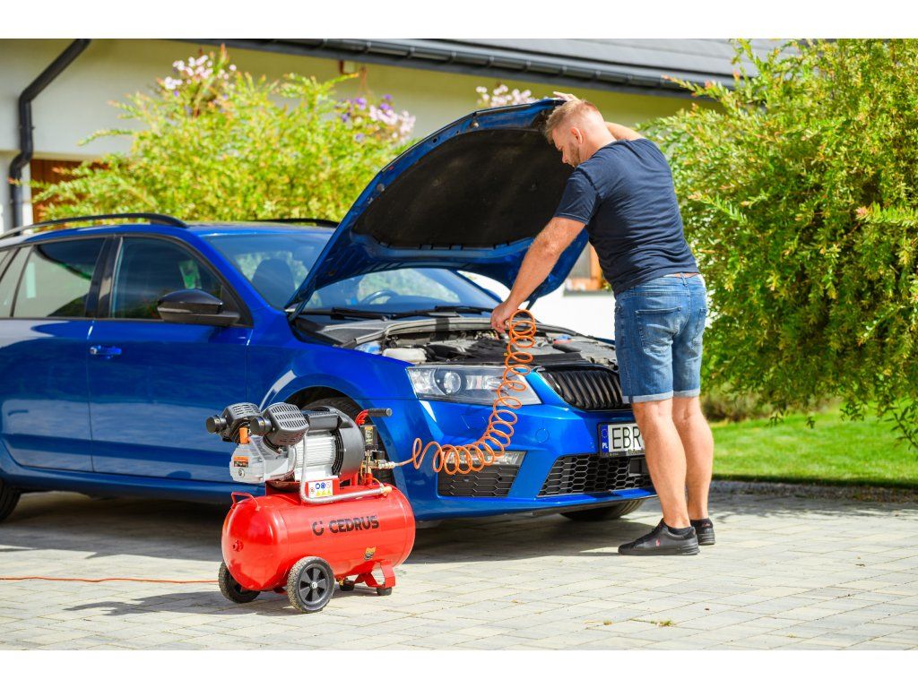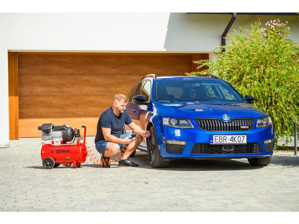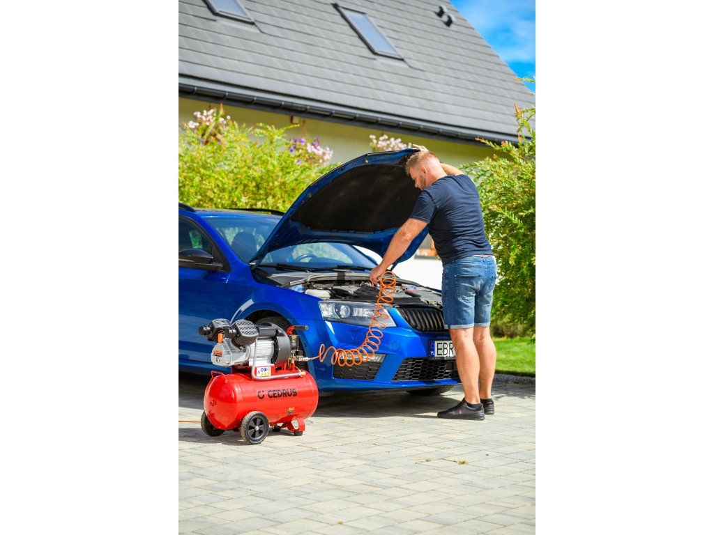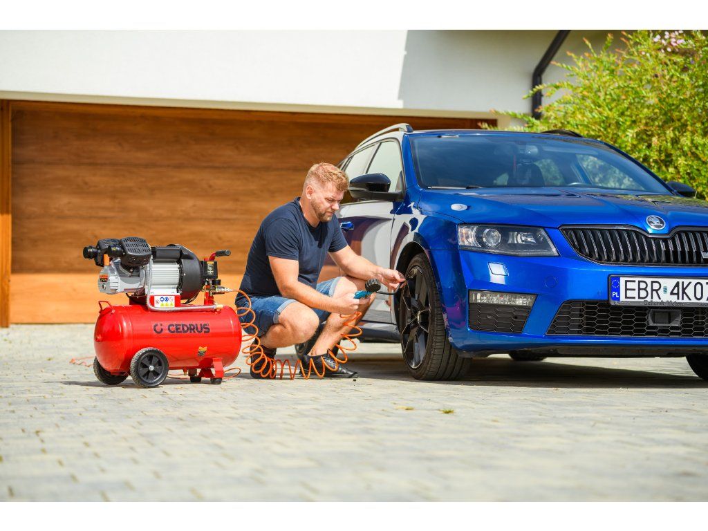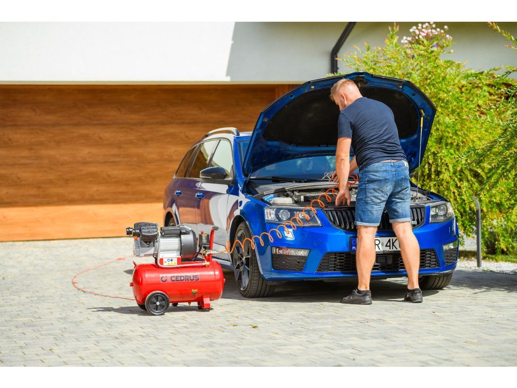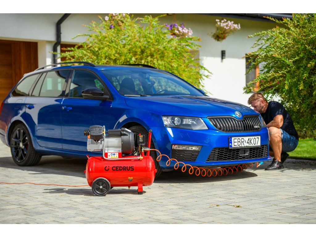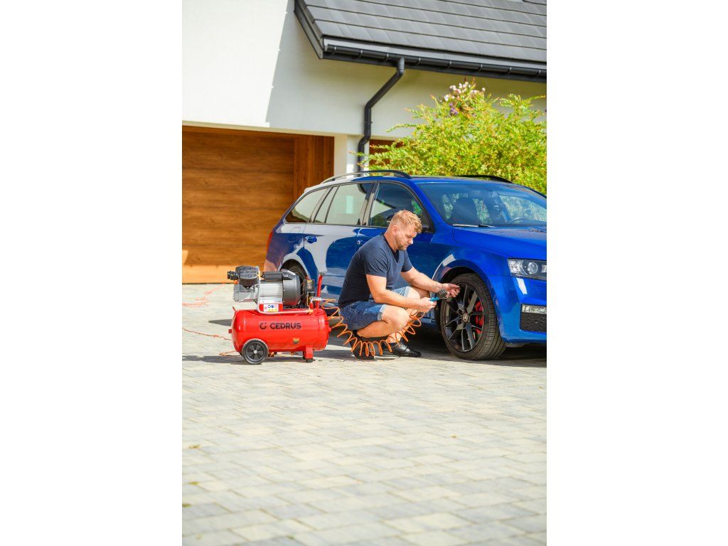 Výkonný a robustný kompresor Cedrus CEDKM50-2T s dvojvalcovou jednotkou, tlakovou nádobou s objemom 50 l a výkonom 2,24 kW. Vhodný na pohon pneumatického náradia, dielenské práce aj servisné použitie. Napájanie 230 V.