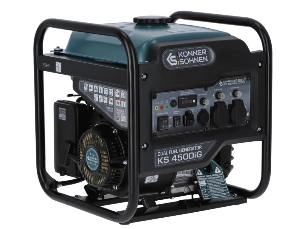 Invertorový generátor KS 4500iG s výkonom 4,5 kW na benzín a 4 kW na LPG poskytuje čistú sínusovú vlnu, tichú prevádzku a dvojpalivový režim pre maximálnu flexibilitu a výrazne nižšie prevádzkové náklady.