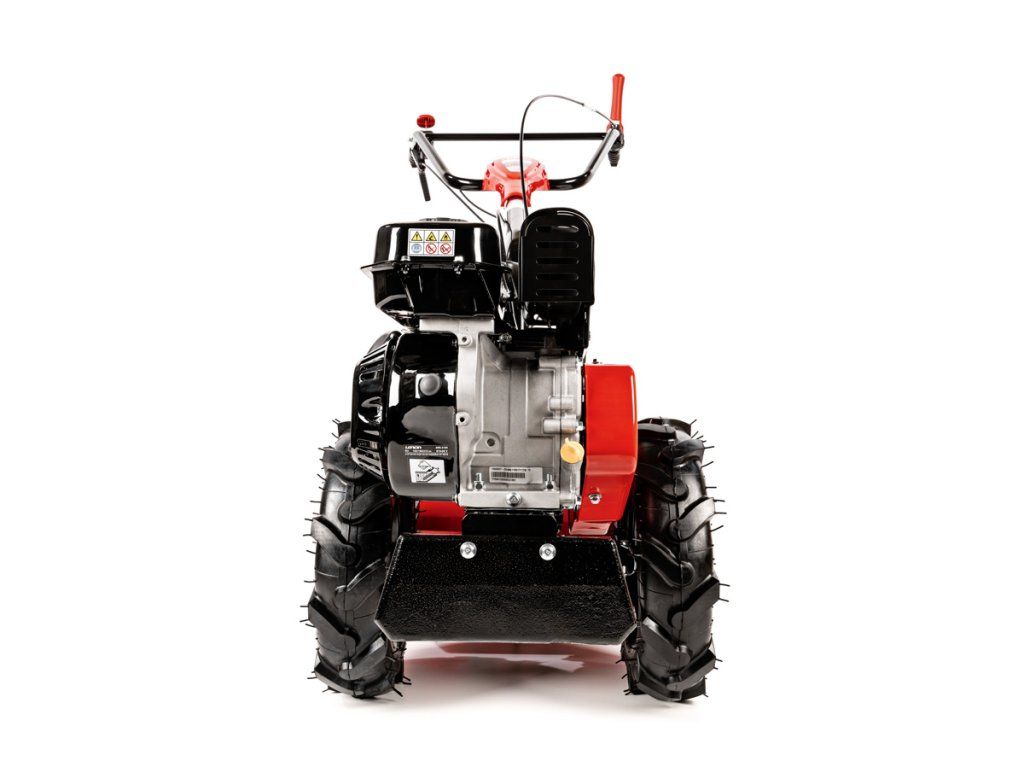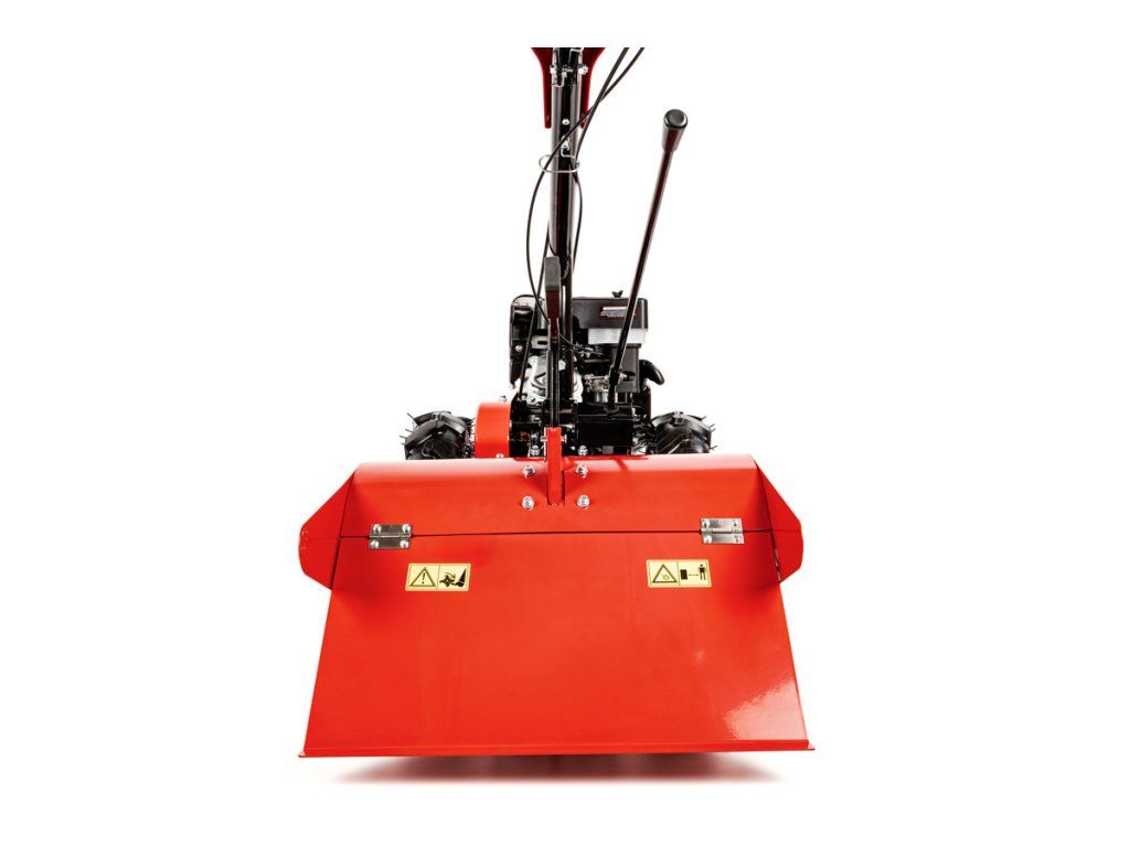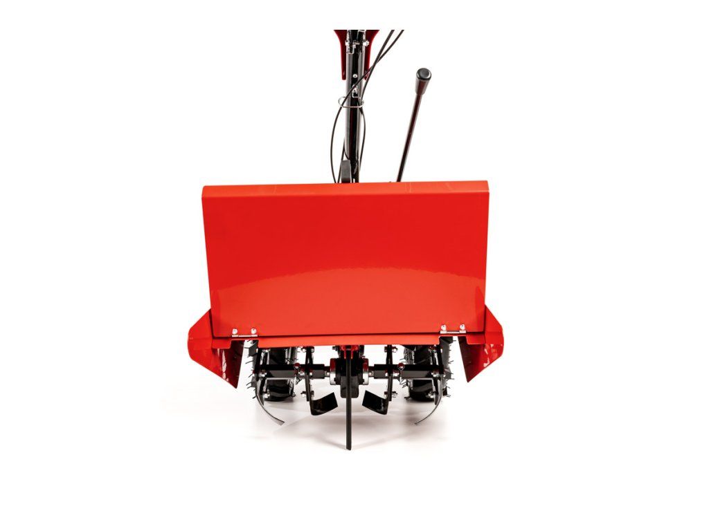 - Srdcom stroja je spoľahlivý štvortaktný motor Loncin s výkonom 4,0 kW, ktorý poskytuje dostatok sily aj pre prácu v ťažšej alebo zhutnenej pôde. Prenos výkonu je riešený kombináciou remeňového pohonu s napínačom a reťazovej prevodovky, čo zabezpečuje dlhú životnosť a stabilný výkon.