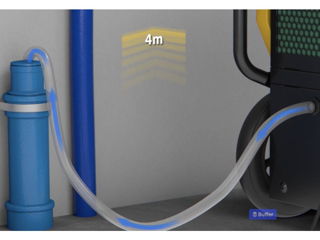 - Odvlhčovač je vybavený zabudovaným čerpadlom kondenzátu, ktoré umožňuje automatické vypustenie kondenzátu až do výšky 3 m (maximálny výtlak). Okrem toho je zariadenie dodávané s prachovým filtrom, vypúšťacou hadicou o dĺžke 4 m a prípravou pre inštaláciu nádržky na kondenzát o objeme 5 l (možno dokúpiť).