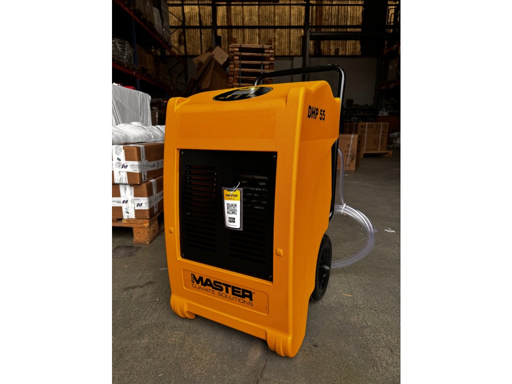 Master DHP 55 je profesionálny odvlhčovač vzduchu s kapacitou 45,9 l/24h a zabudovaným čerpadlom kondenzátu pre pohodlný odvod vody až do výšky 3 m. Ideálny pre požičovne a profesionálne použitie, ponúka možnosť nastavenia požadovanej vlhkosti, počet motohodín a časové nastavenie pre automatické zapnutie/vypnutie.