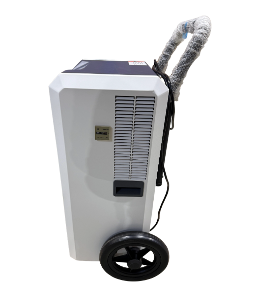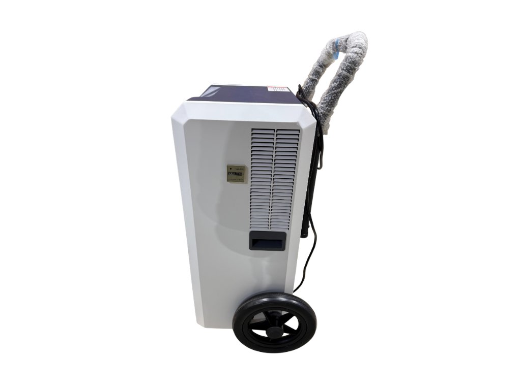 - Prehľadný LED displej s mäkkými tlačidlami umožňuje jednoduché ovládanie a kontrolu prevádzky. Odvlhčovač je konštruovaný ako mobilná jednotka – disponuje veľkými gumovými kolesami, 360° otočnými kolieskami a masívnym kovovým madlom pre jednoduchú manipuláciu aj na stavbe.