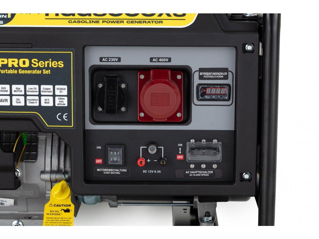 Vzduchom chladený štvortaktný motor má veľkú 25-litrovú nádrž, ktorá umožňuje dlhú a bezproblémovú prevádzku až 7,7 hodiny. Generátor sa spúšťa ručne a poskytuje trojfázovú prevádzku. Výsledný výkon 6,5 kW (maximálny výkon) a 6 kW (menovitý výkon) robí z generátora výkonného spoločníka.