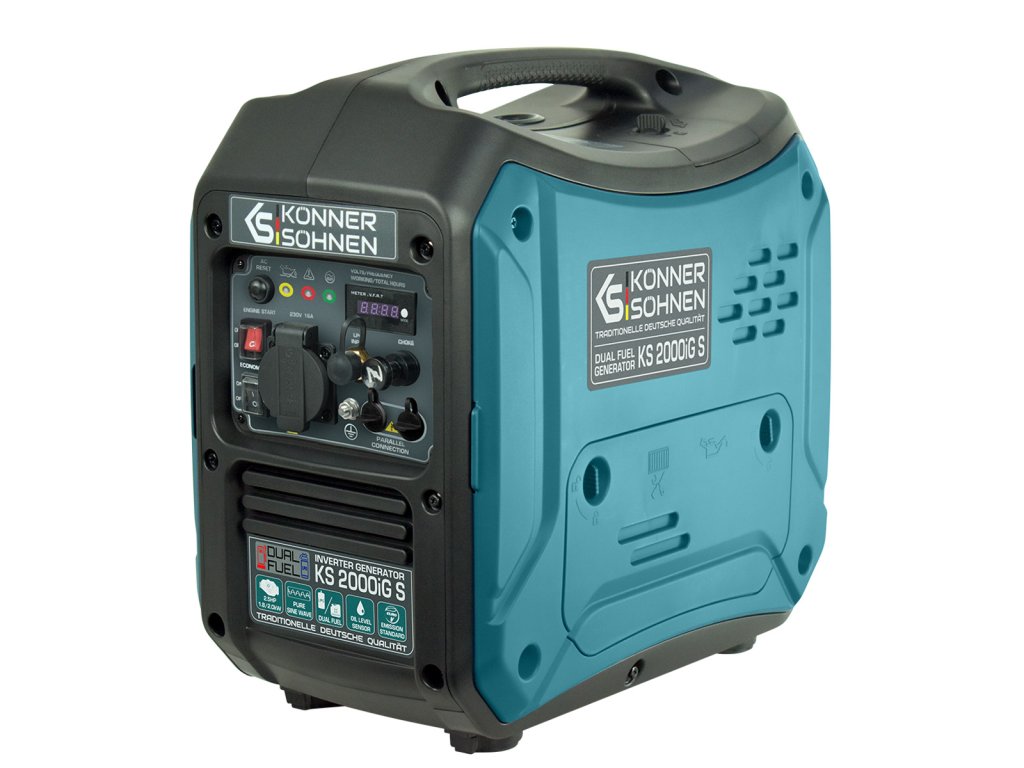 Plynový a benzínový invertor Könner & Söhnen KS 2000iG S je pohodlný, kompaktný a takmer nehlučný zdroj elektrickej energie. Kľúčovou vlastnosťou tohto modelu je, že vytvára elektrický prúd so správnym sínusovým priebehom.