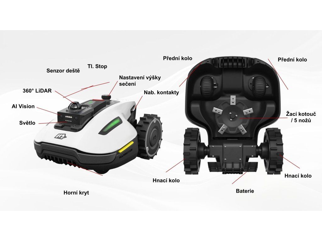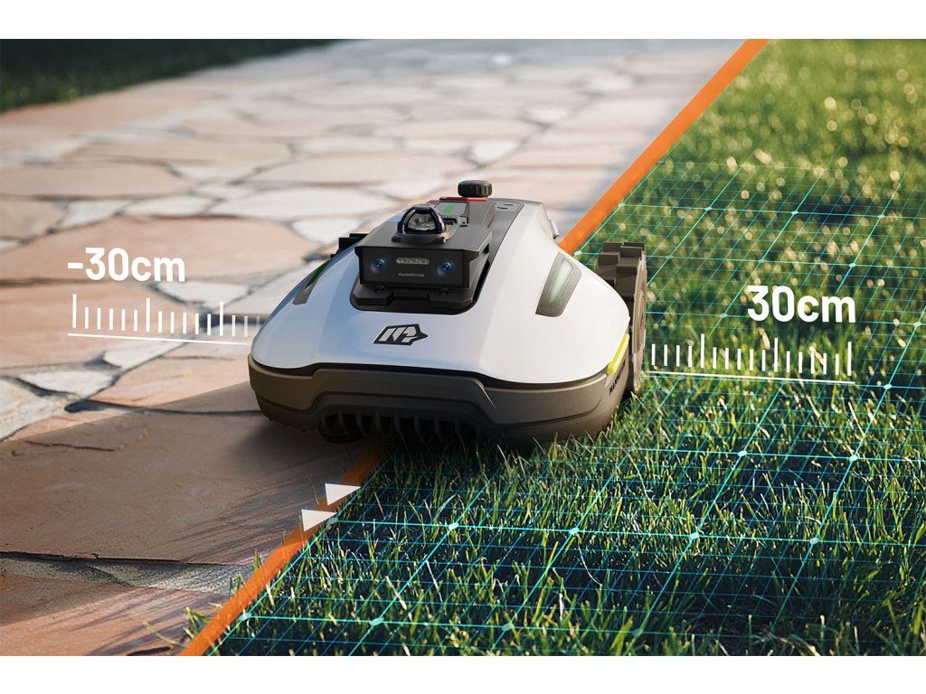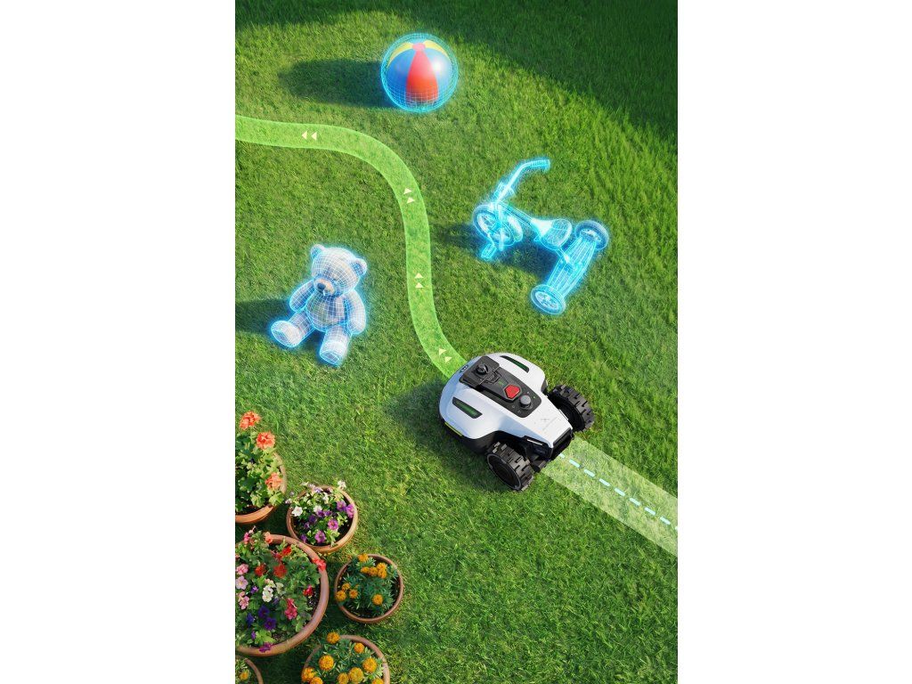 - Vďaka výkonnému AI čipu dokáže rozpoznať viac ako 300 typov objektov a predvídať ich pohyb, čo zabezpečuje bezpečné kosenie v blízkosti prekážok, detí aj domácich zvierat.
