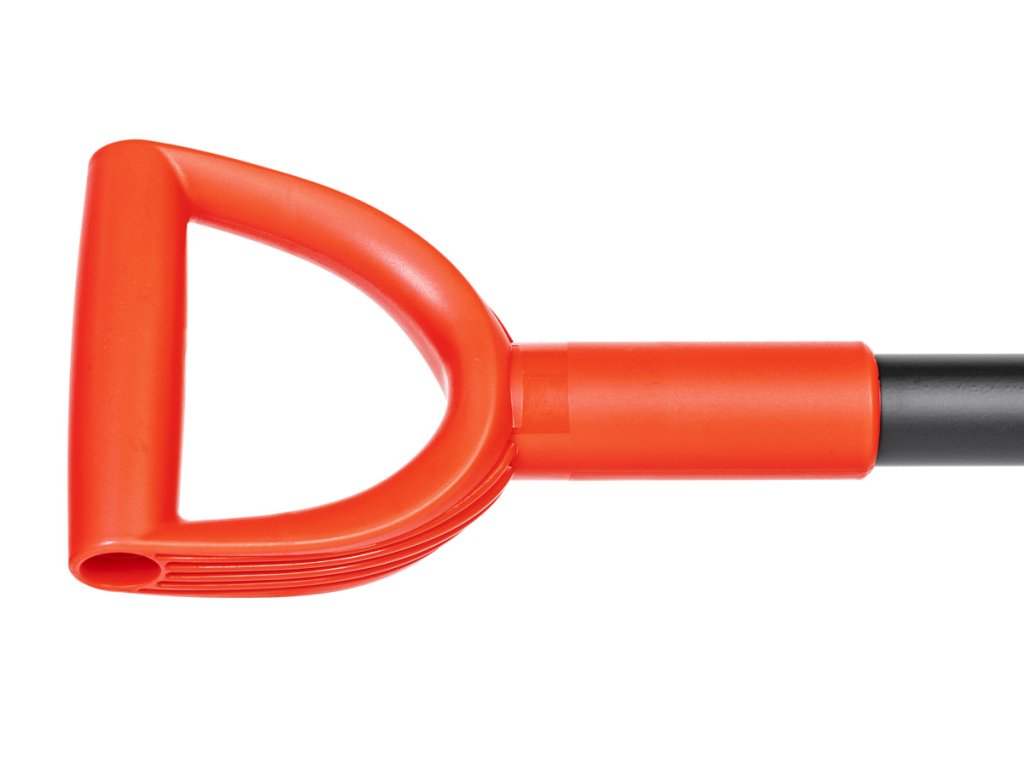 - Rýľ má ergonomicky tvarovanú rukoväť v tvare písmena „D“ z kvalitného plastu PP, ktorá umožňuje pevný úchop a dobré ovládanie aj pri dlhšom používaní. Vďaka dĺžke 118 cm poskytuje pohodlnú pracovnú výšku a znižuje únavu chrbta.