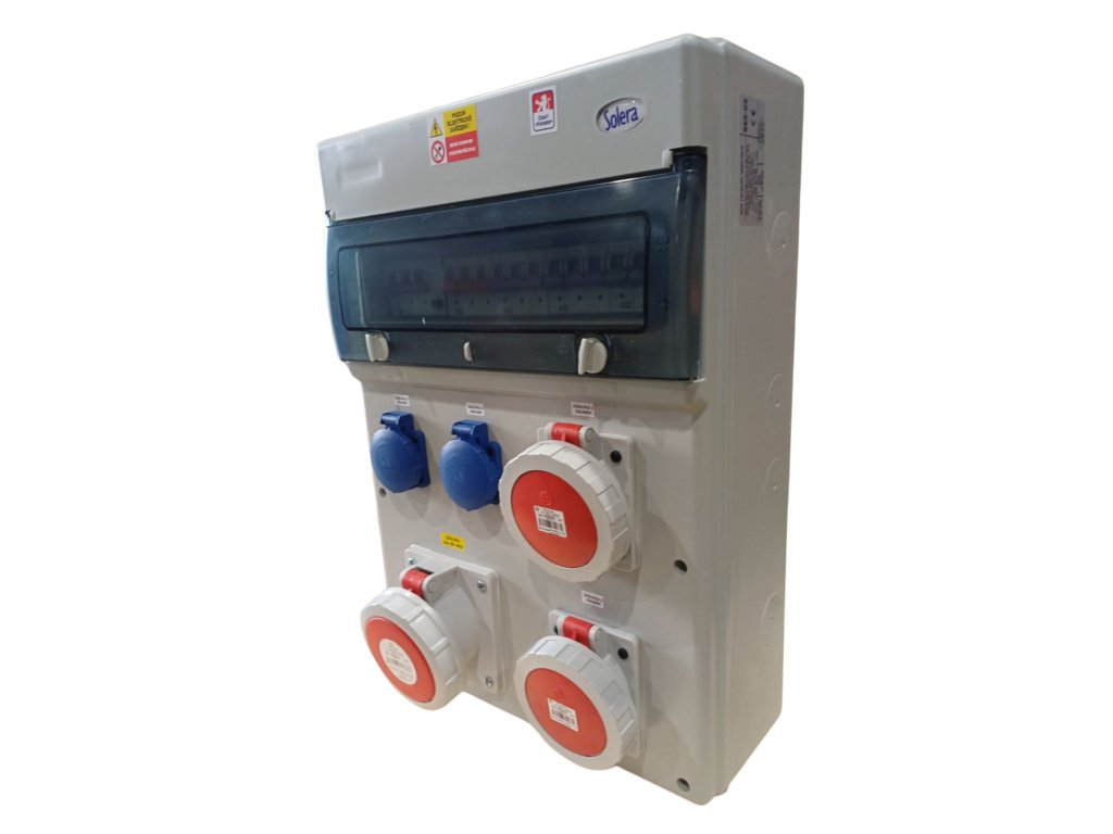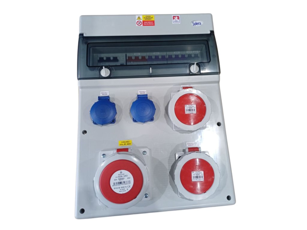 - Skrinka je vyrobená z odolného plastu s vysokým stupňom krytia, vhodná pre vnútorné aj vonkajšie použitie. Vďaka kombinácii jednofázových (230 V) a trojfázových (400 V) zásuviek je rozvodnica ideálna na pripojenie stavebných strojov, náradia, ohrievačov aj ako výstupný rozvod pre elektrocentrály.