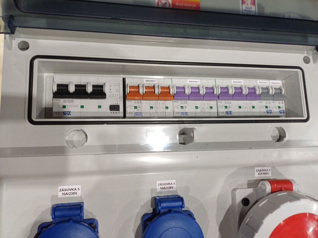 | Zásuvky: | 2× 230 V / 16 A/3× 400 V (1× 63 A, 2× 32 A) |