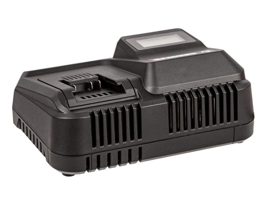 - Zabudovaný ventilátor aktívne ochladzuje nabíjačku počas prevádzky a prispieva k stabilite a predĺženiu životnosti. Stav batérie sa prehľadne zobrazuje na digitálnom displeji, ktorý ukazuje aktuálnu úroveň nabitia aj čas nabíjania. Po ukončení procesu nabíjania sa zobrazí hlásenie „OK“ a displej sa automaticky vypne.