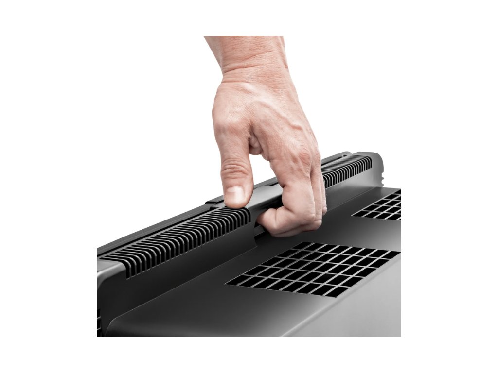 AirgoClean® 145 E je možné ľahko pripevniť na stenu alebo použiť ako prenosnú jednotku vďaka rukoväti a kompaktnému dizajnu. S nízkou hlučnosťou (od 34,5 dB) a detským zámkom je vhodná aj do rodinných priestorov.