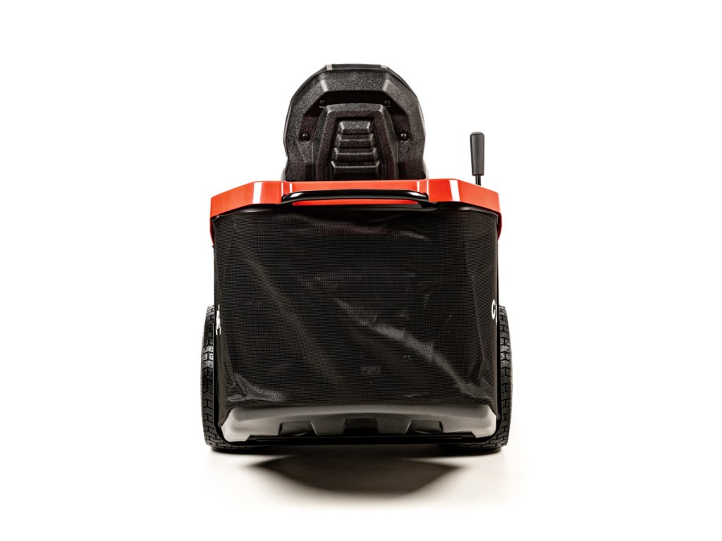 - Výšku kosenia možno centrálne nastaviť v rozsahu 30–90 mm, čo umožňuje prispôsobiť výšku trávnika podľa aktuálnych podmienok. Pokosená tráva je odvádzaná do veľkého 280-litrového koša, ktorý je vybavený senzorom naplnenia a snímačom správneho usadenia.